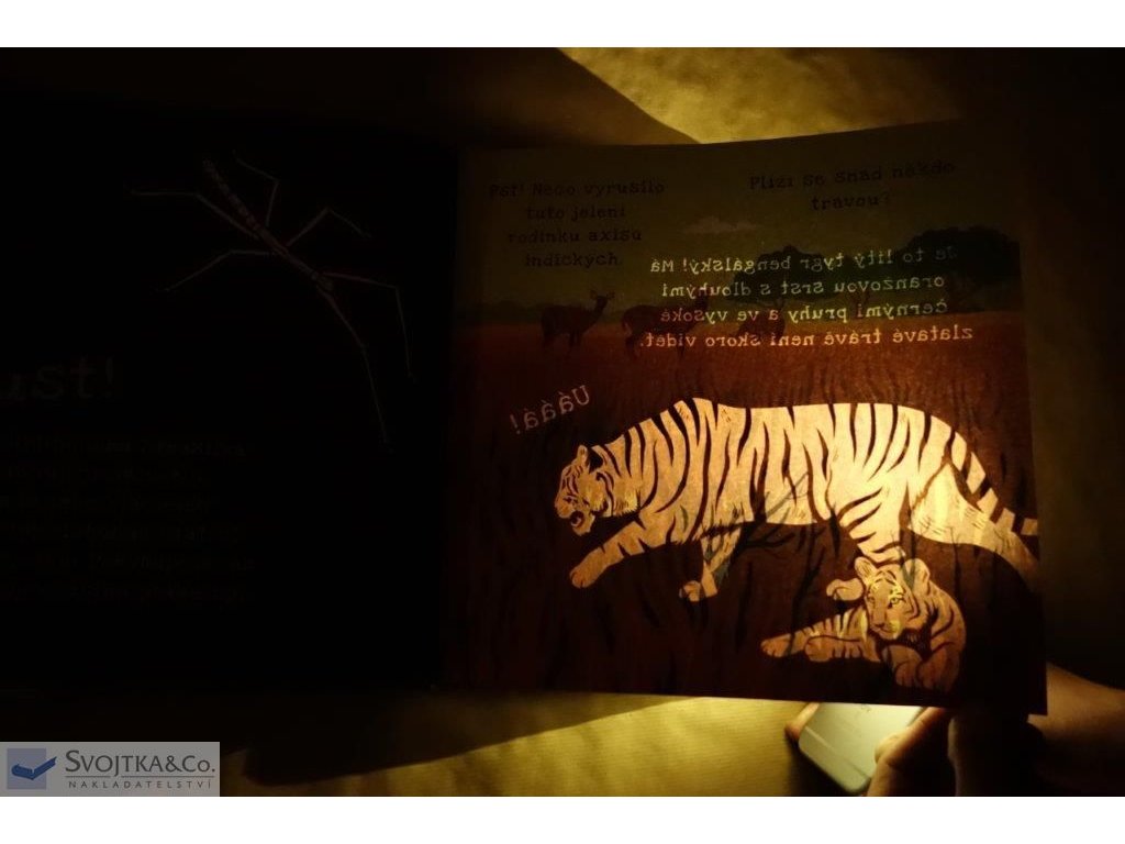 Kdo se ukrývá v divočině? Rozsviť si pod stránkou baterku nebo přidrž knihu proti světlu a podívej se… Díky této interaktivní knížce zblízka prozkoumáš obydlí zvířat a objevíš svět plný velkých překvapení! Navštívíš důmyslně ukrytá doupata, budeš pozorovat predátory chystající se k útoku a seznámíš se s chováním mnoha tvorů ze zvířecí říše. Od polární lišky vykukující ze sněhu po chobotnici kroužkovanou zavrtanou do písčitého mořského dna – žádná tajemství zvířecího maskování ti nezůstanou skryta! Připrav si baterku, tvá dobrodružná cesta za poznáním právě začíná.