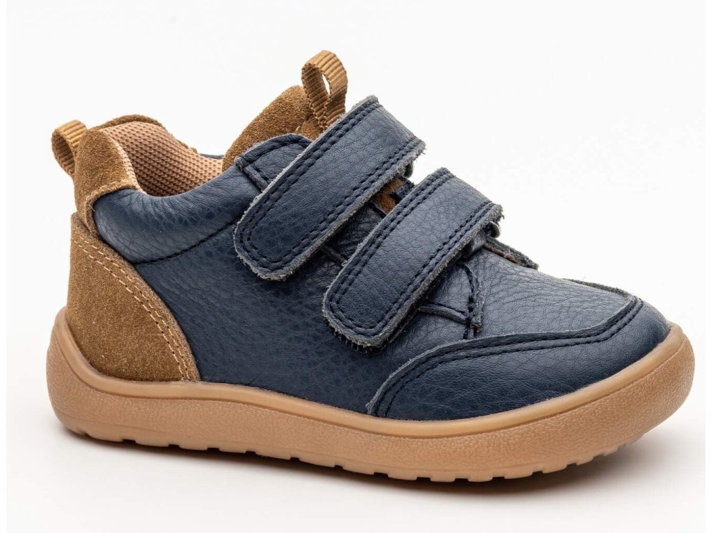Protetika Alan Denim v tmavě modré barvě s hnědými detaily jsou chlapecké celoroční barefoot boty převážně z hladké kůže s textilní podšívkou. Boty sednou na normálně široké nožky. Špička je dostatečně prostorná a a vhodná pro dominantní palce. Podrážka je měkká a ohebná.