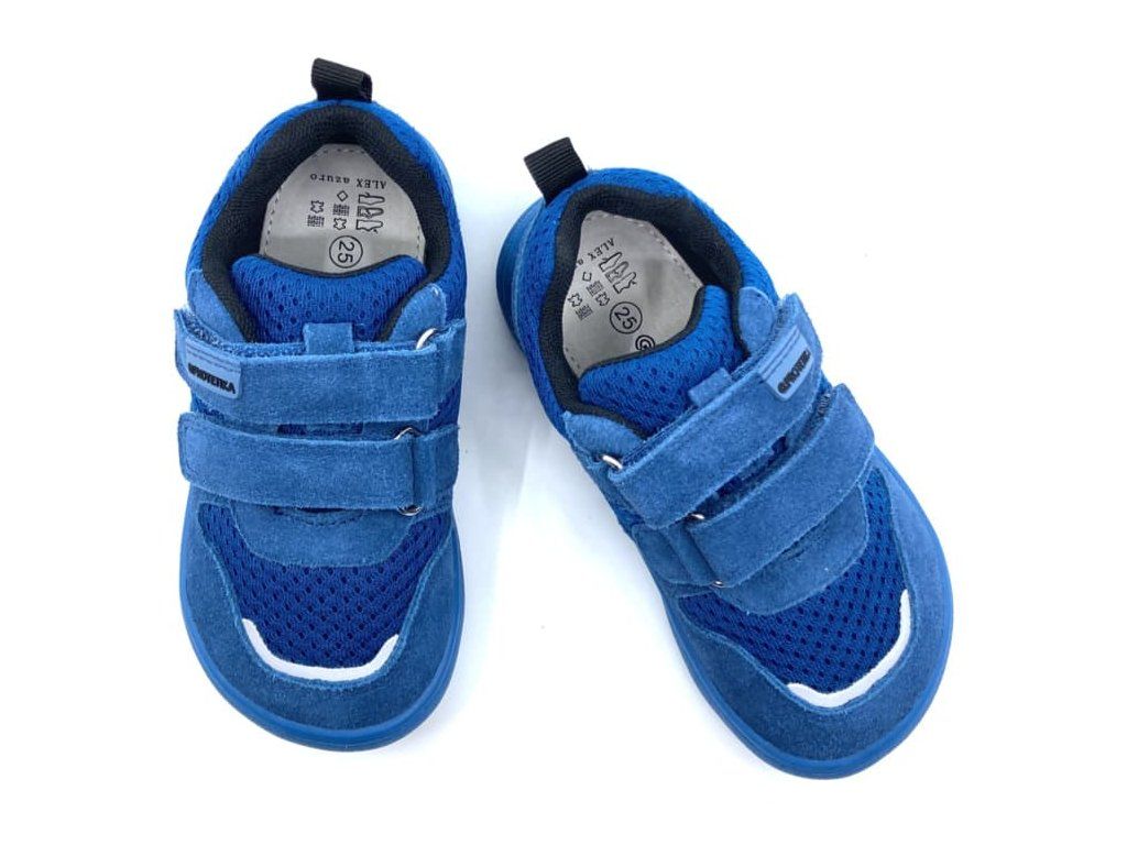 Protetika Alex Azuro v modrém denim odstínu jsou prodyšné barefoot tenisky vhodné do teplých dnů. Svršek boty je z prodyšného meshe (síťoviny) a namáhaná místa jsou z broušené kůže a jsou odolné proti okopání. Podšívka je textilní s vyjímatelnou stélkou z kůže. Jde tak o ideální tenisky na jaro a léto.
