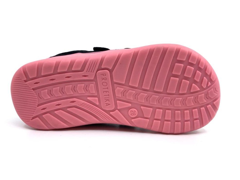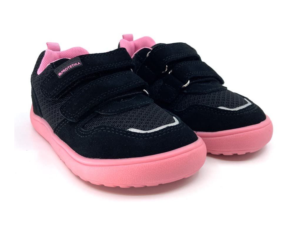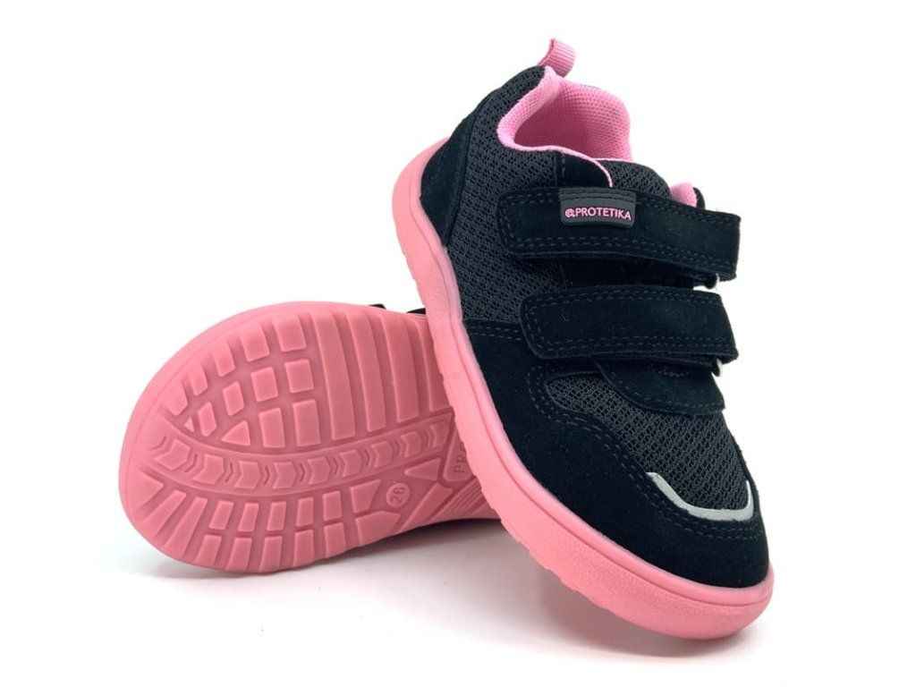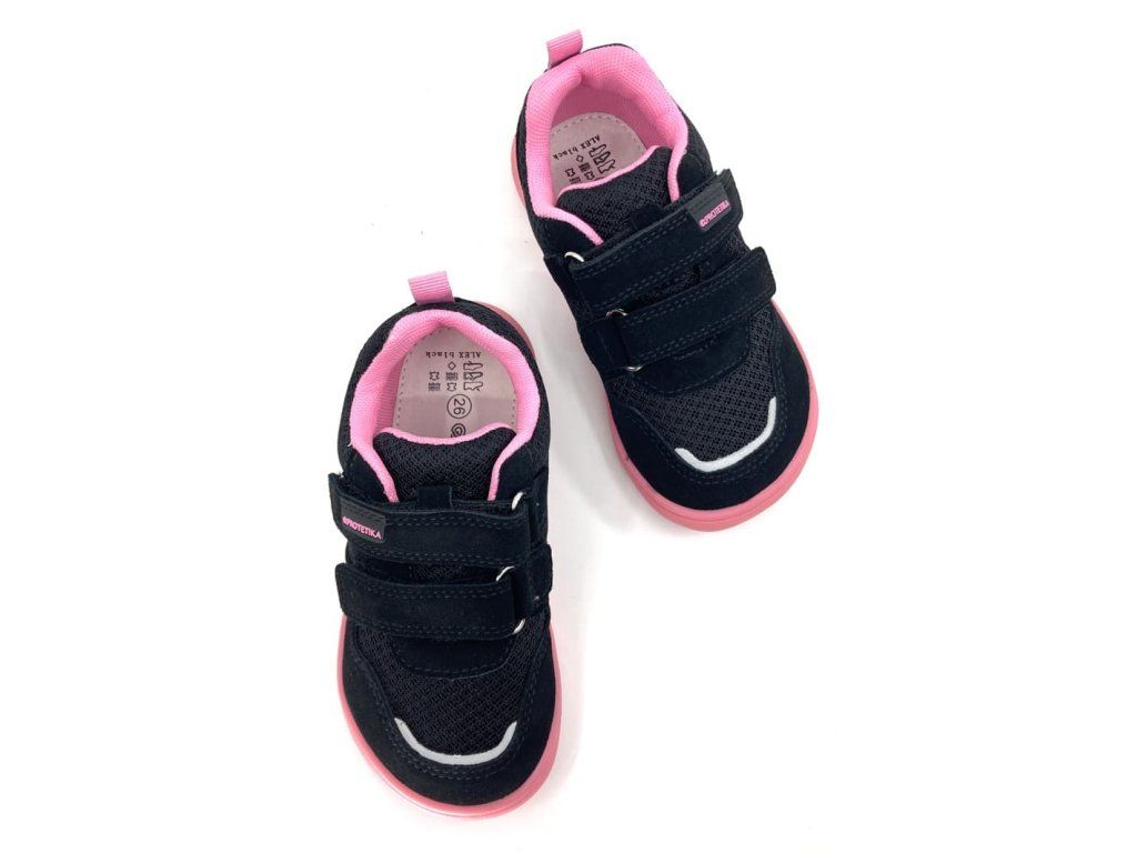 Protetika Alex Black v černé barvě s růžovými detaily jsou prodyšné barefoot tenisky vhodné do teplých dnů. Svršek boty je z prodyšného meshe (síťoviny) a namáhaná místa jsou z broušené kůže a jsou odolné proti okopání. Podšívka je textilní s vyjímatelnou stélkou z kůže. Jde tak o ideální tenisky na jaro a léto.