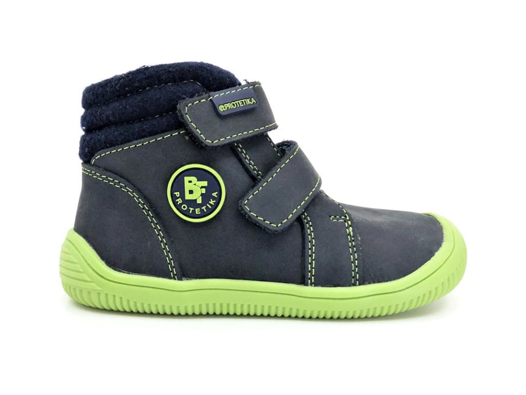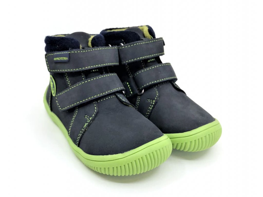 Protetika Fabian Navy jsou kožené dětské barefoot boty, vychází z modelu Tendo, ale oproti nim jsou přibližně o 2 - 3 cm vyšší (podle velikosti) a sahají tak až nad kotník. Druhým rozdílem oproti modelu Tendo je, že tyto Fabian jsou mírně zateplené fleecem, stále se ale jedná o model vhodný spíše na podzim, nikoli na zimu. Boty jsou z vnějšku kožené (nubuk), pouze z vnější strany je textilní horní límec boty okolo kotníku. Podšívka je fleecová, s vyjímatelnou stélkou s koženým nášlapem.