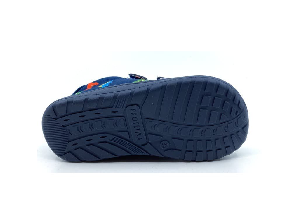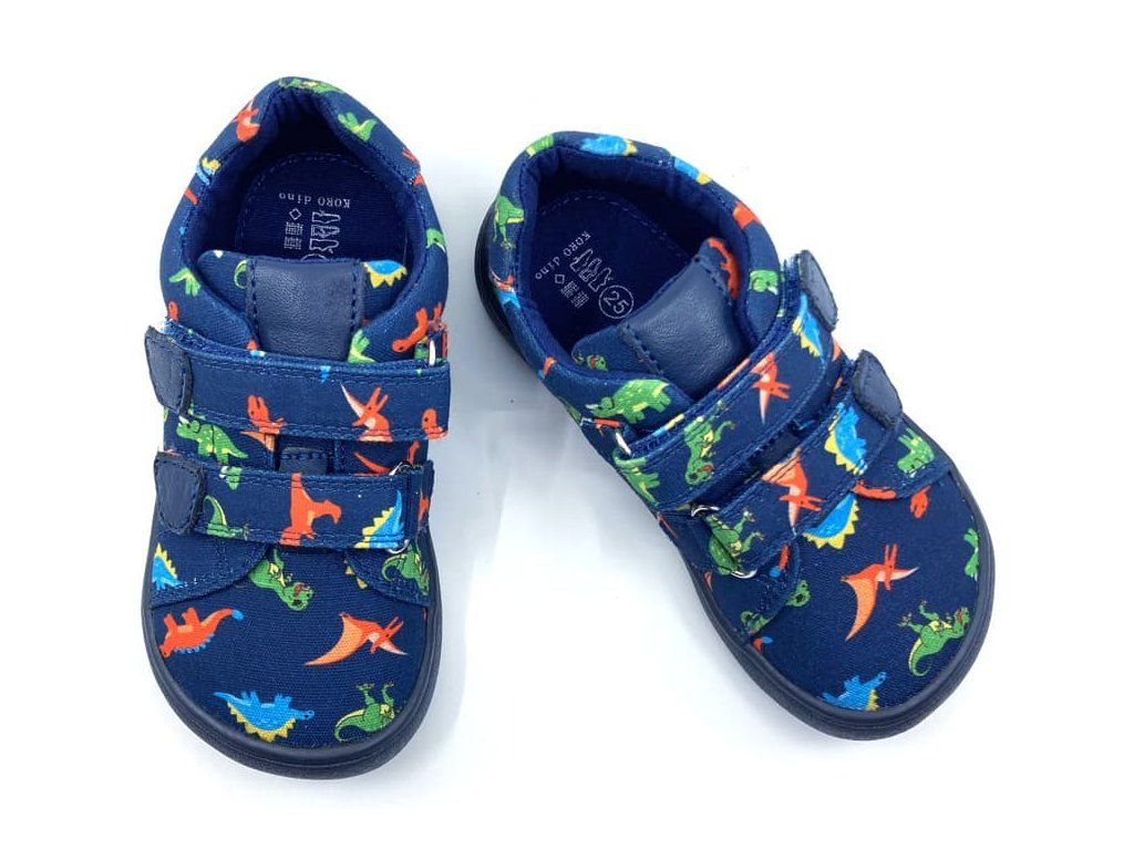 Protetika Koro Dino s oblíbenými dinosaury jsou dětské textilní barefoot tenisky, vhodné na jaro a léto. Sednou na normálně široké nožky, mají anatomický tvar vhodný pro dominantní palce. Podrážka je výborně ohebná všemi směry. Tenisky Koro vaše ratolest užije uvnitř i venku. Jsou perfektně prodyšné, mají textilní podšívku a stélku s nášlapem z příjemné kůže. Novinka roku 2026.