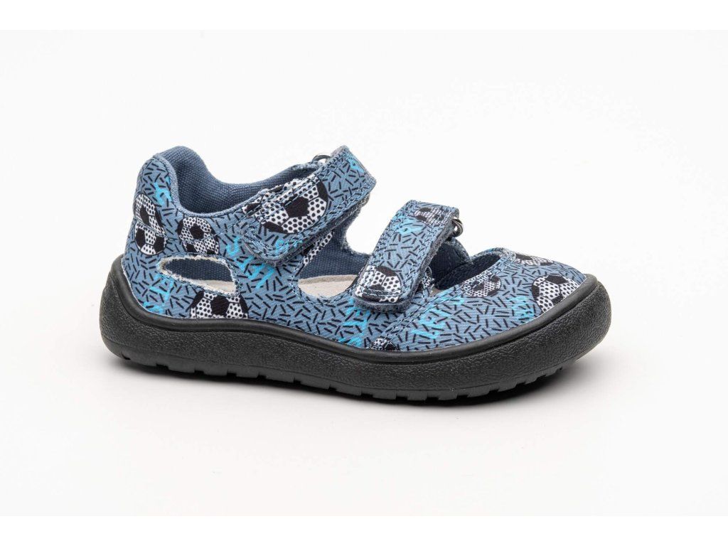 Textilní barefoot sandálky Protetika Tafi Ball v modré barvě s oblíbeným fotbalovým motivem jsou skvělé na každodenní nošení během celého léta. Boty jsou měkké a ohebné. Sednou na průměrně široké nožky s dominantním palcem.