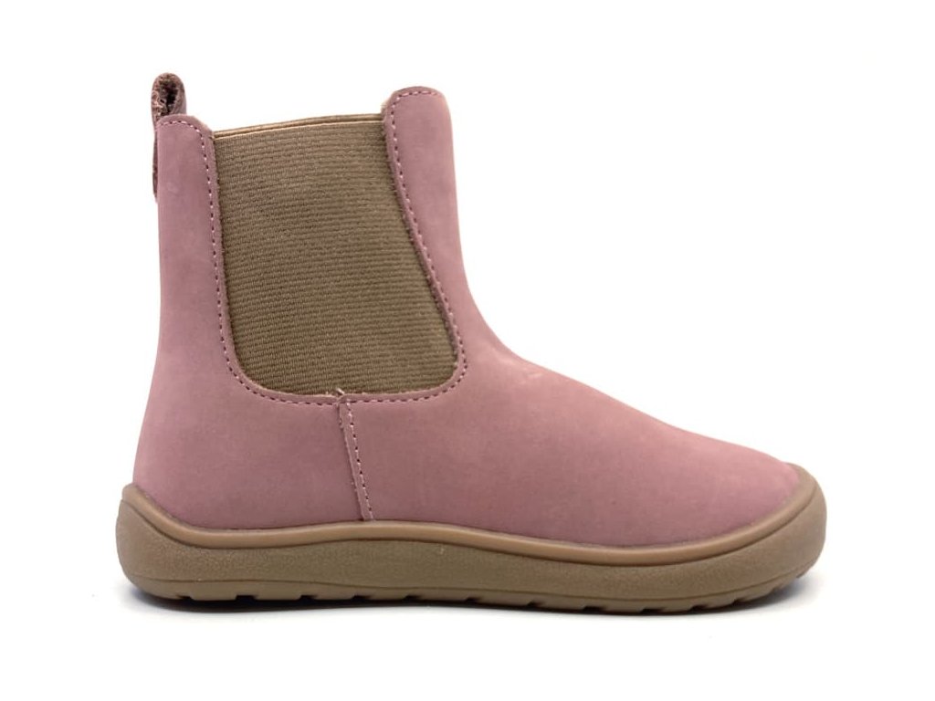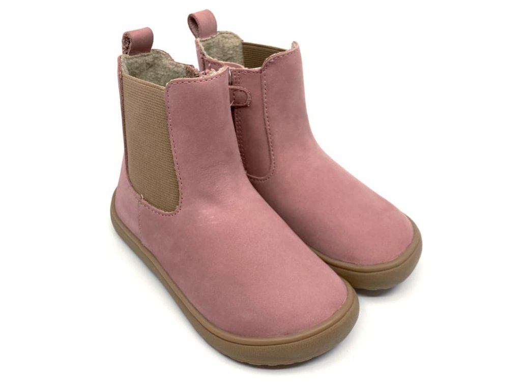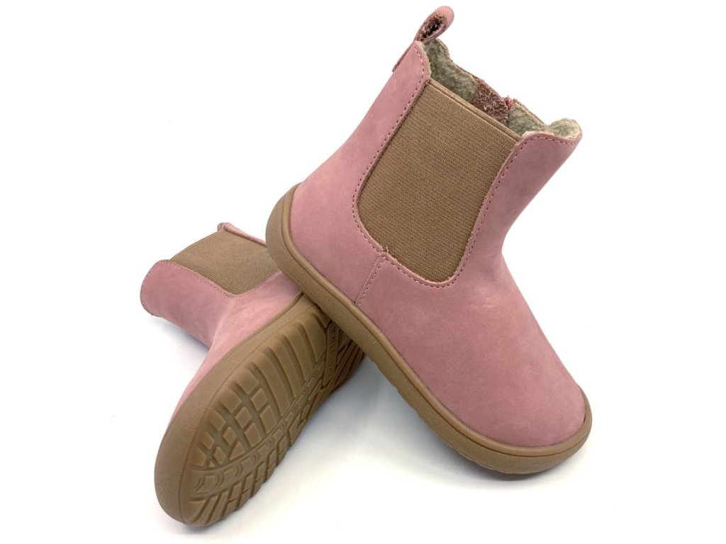 Protetika Tita Nude jsou dívčí barefoot polokozačky z nubukové kůže ve světle růžové barvě s béžovou podrážkou. Na vnitřní straně je zip pro snadné nazouvání, na vnější straně kotníku je silná guma pro pohodlný pohyb.