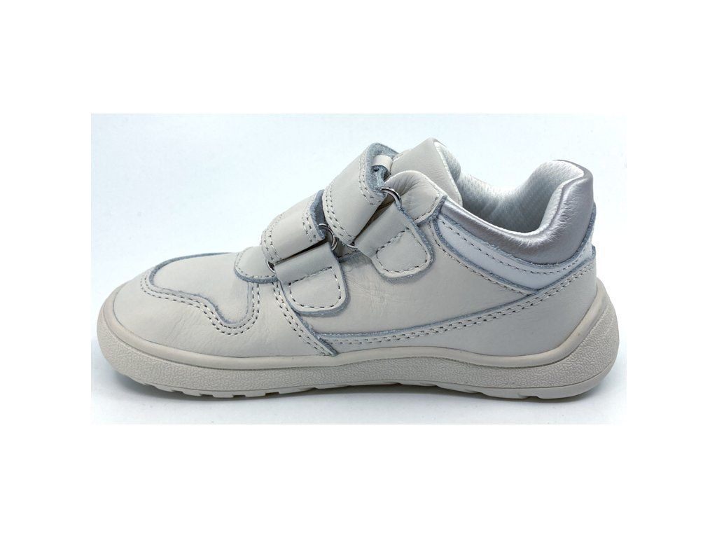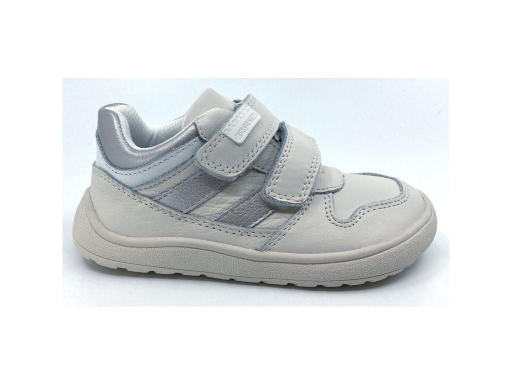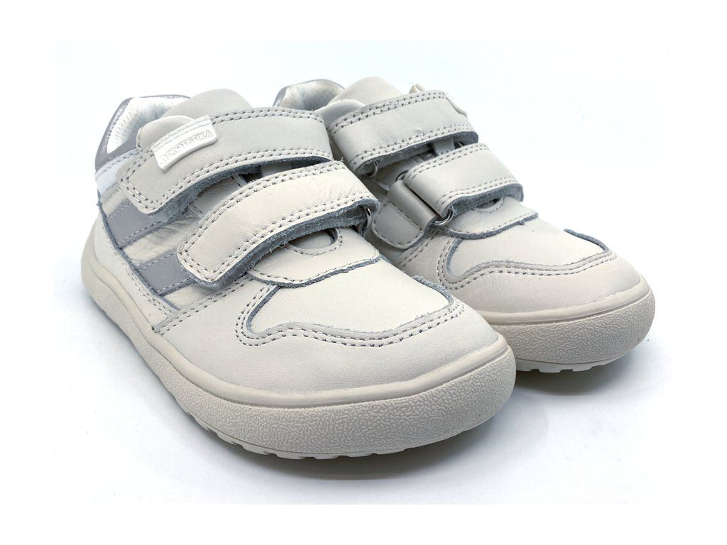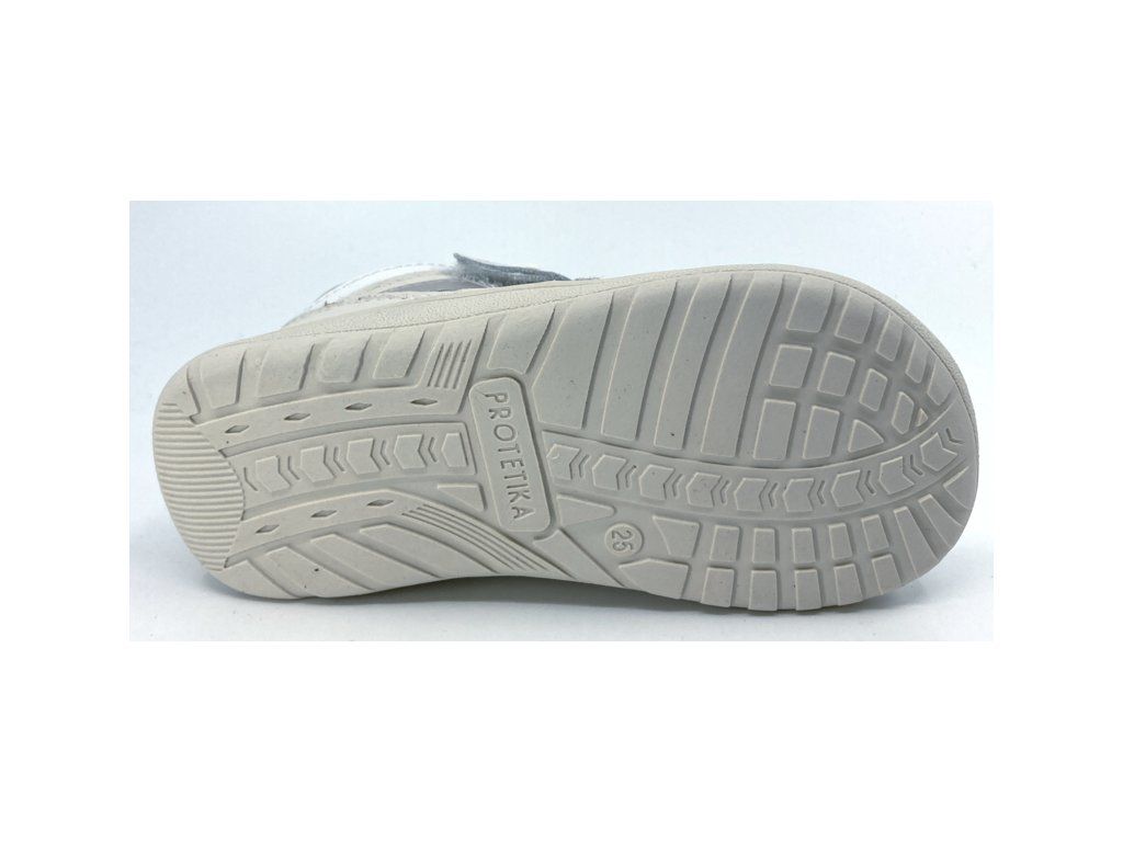 Protetika Veston Bianca v elegantní bílé barvě se stříbrnými detaily jsou dětské celoroční barefoot boty. Svršek tvoří kombinace hladké a broušené kůže, podšívku prodyšná textilie. Boty sednou na normálně široké nožky. Špička je dostatečně prostorná a a vhodná pro dominantní palce. Podrážka je měkká a ohebná, stélka má nášlapnou vrstvu z příjemné kůže.