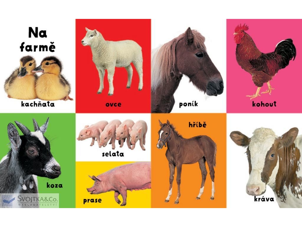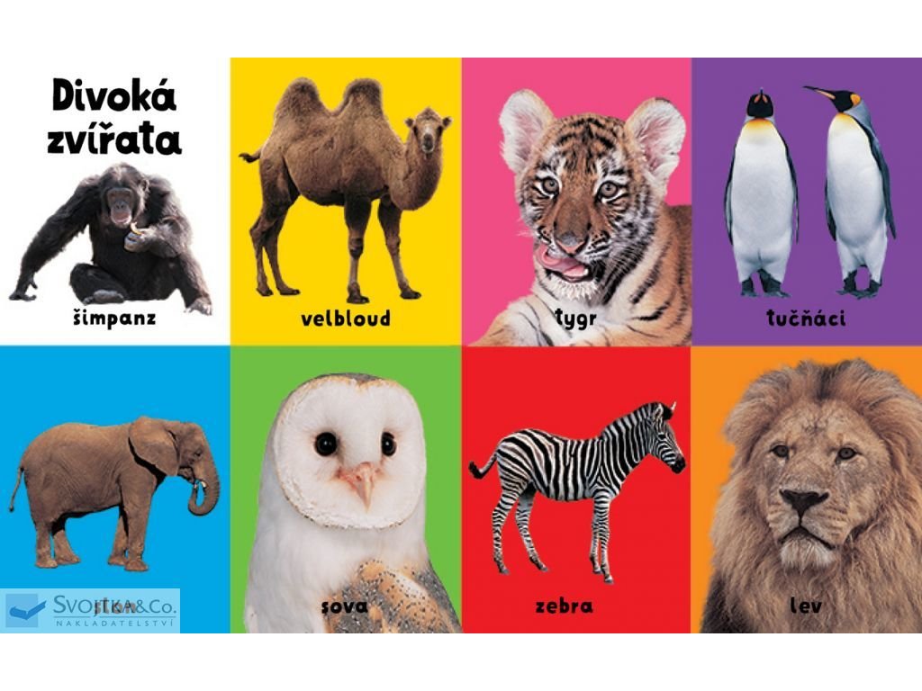 V této knížce určené těm nejmenším "čtenářům", ale především jejich rodičům, kteří mají zájem na rozvíjení slovní zásoby svých dětí, je představeno 100 zvířat na barevných fotografiích s popisky. Měkká obálka a zaoblené rohy umožňují vašim ratolestem pustit se náruživě do "čtení", aniž byste se museli obávat o bezpečnost dětí či stav knihy. Na stránkách najdete přehledně roztříděné názvy zvířat dle několika kategorií – domácí mazlíčci, polární zvířata, zvířata žijící v džungli aj. Kdo to bučí a mečí na statku? Kdopak se to schovává v lese? Naučte dětmi rozpoznávat i zvířata ze vzdálenějších kontinentů – Afriky a Austrálie. V knížce najdete zvířata velká (slon, medvěd, žirafa), ale i ta nejmenší – brouky a hmyz.Doplňkové parametry