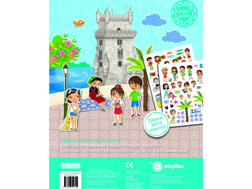 Oblíbená série minimiky přichází s další novinkou v podobě zábavné samolepkové knížky, v níž budou děti společně s panenkou Rosou a jejími kamarádkami Mariou a Filipou objevovat nejznámější kouty portugalské metropole Lisabonu, nejzápadněji položeného hlavního města v Evropě. Lisabonskou scenerii mohou děti doplňovat spoustou krásných samolepek podle vlastní fantazie a v knížečce najdou také mnoho zajímavých informací o tamních památkách, známých místech, ale také třeba o specialitách místní kuchyně.