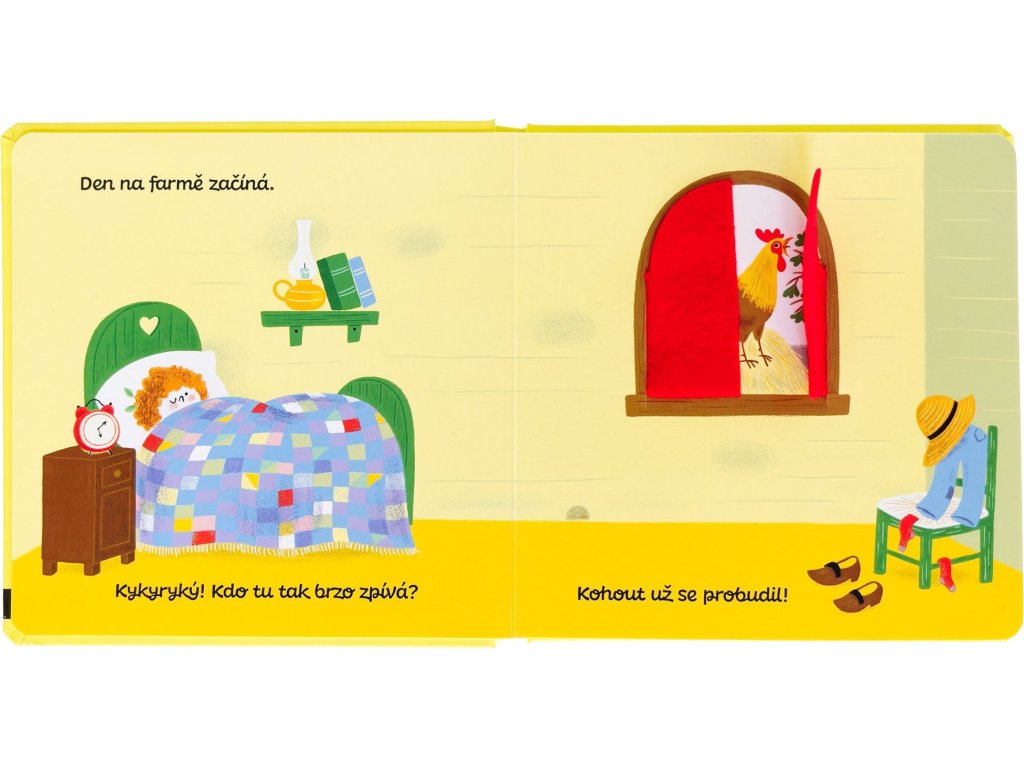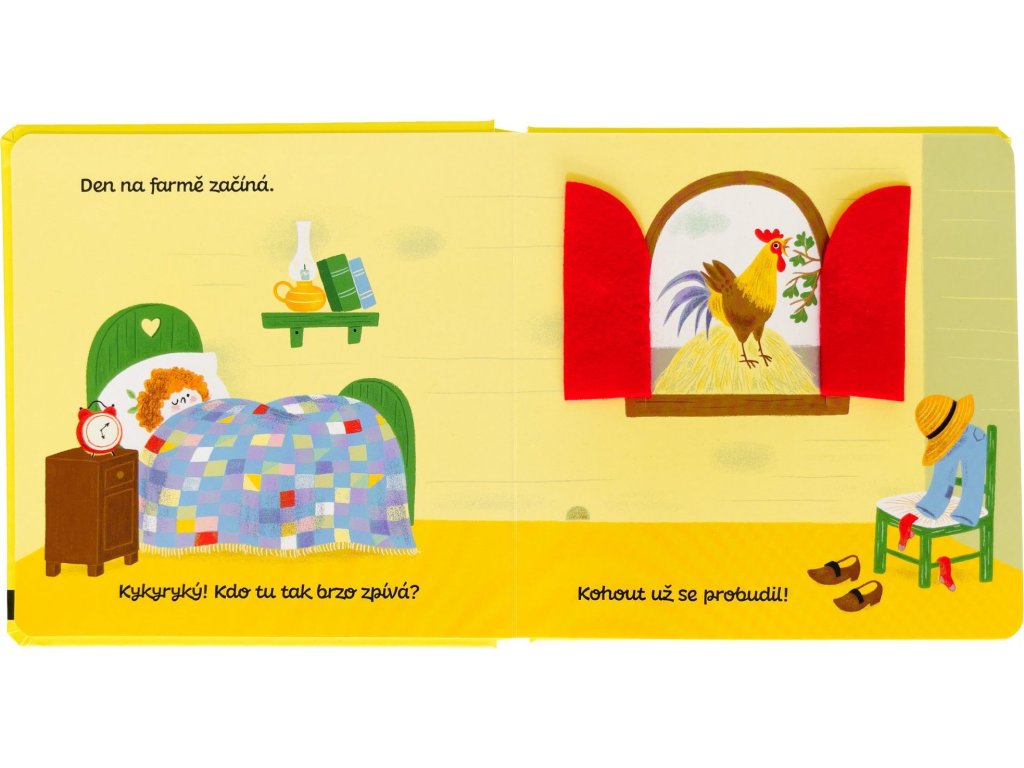 Toto leporelo s měkkými okénky - plstěnými záložkami různých tvarů - je pro děti od půl roku jako stvořené. Už od velmi útlého věku si děti rády hrají tak, že nechávají věci zmizet a zase se objevit. Díky měkkým plstěným okénkům v této knížce si procvičí jemné motorické schopnosti a s radostí objeví všechna zvířata na farmě.Doplňkové parametry