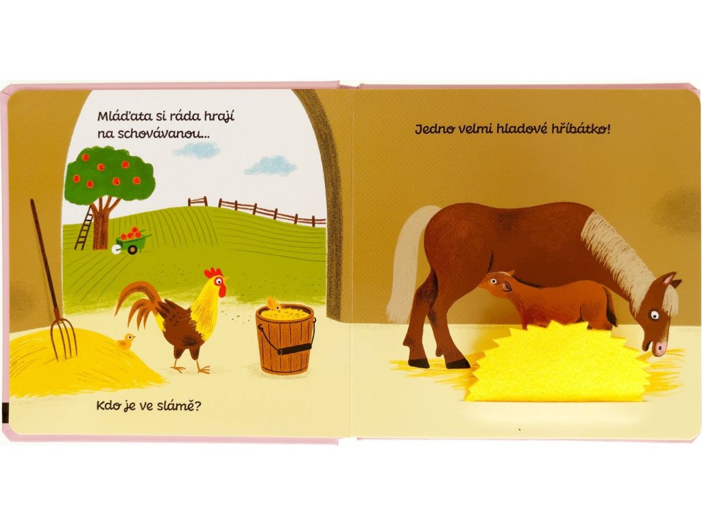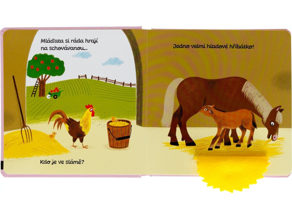 Toto leporelo s měkkými okénky - plstěnými záložkami různých tvarů - je pro děti od půl roku jako stvořené. Už od velmi útlého věku si děti rády hrají tak, že nechávají věci zmizet a zase se objevit. Díky měkkým plstěným okénkům v této knížce si procvičí jemné motorické schopnosti a s radostí objeví všechna zvířecí mláďata.Doplňkové parametry