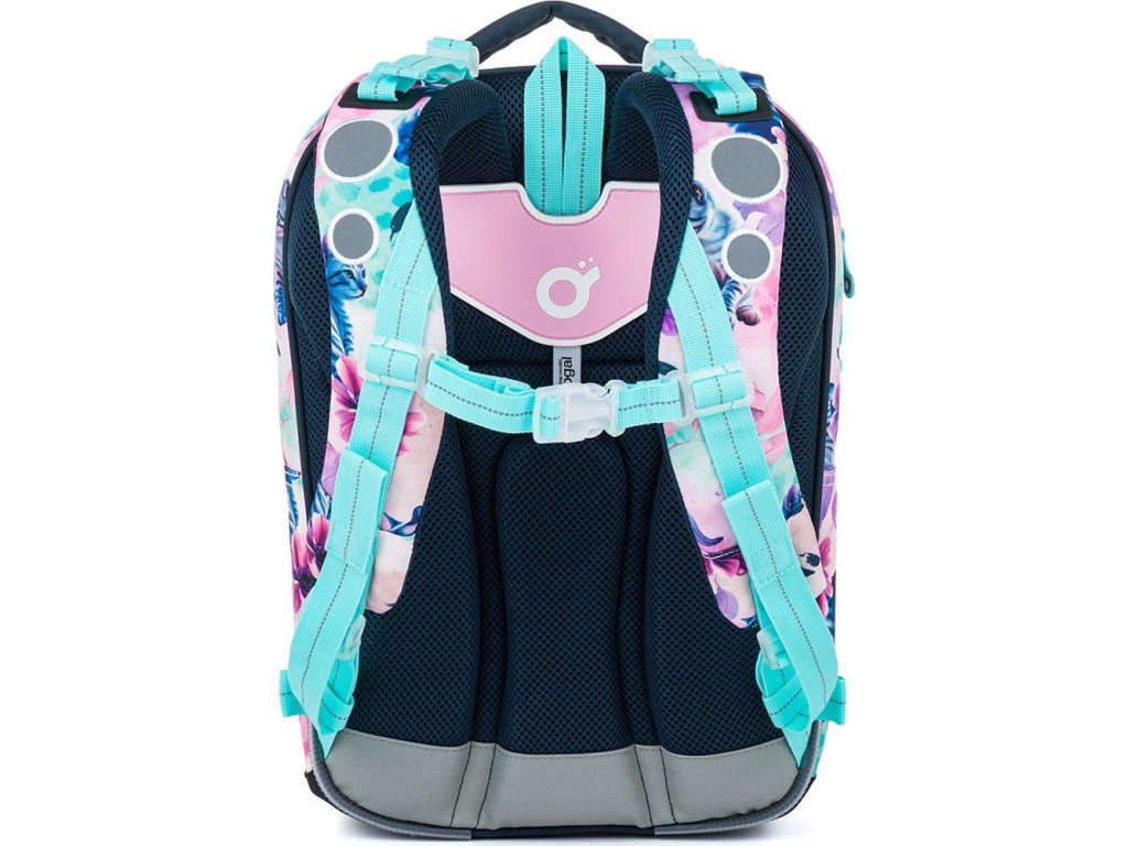 Batoh má ergonomicky tvarovaná záda a měkce polstrované ramenní popruhy, které se snadno přizpůsobí postavě dítěte. Díky výškově nastavitelné hrudní přezce batoh dobře drží na zádech a neklouže ani při pohybu.