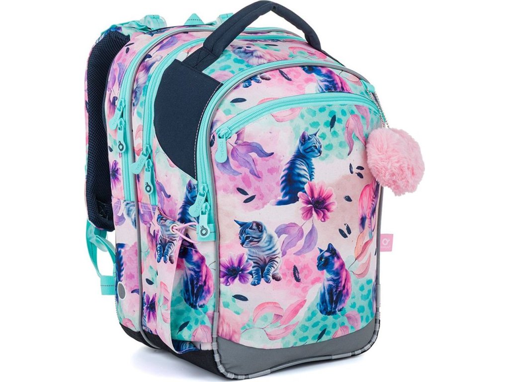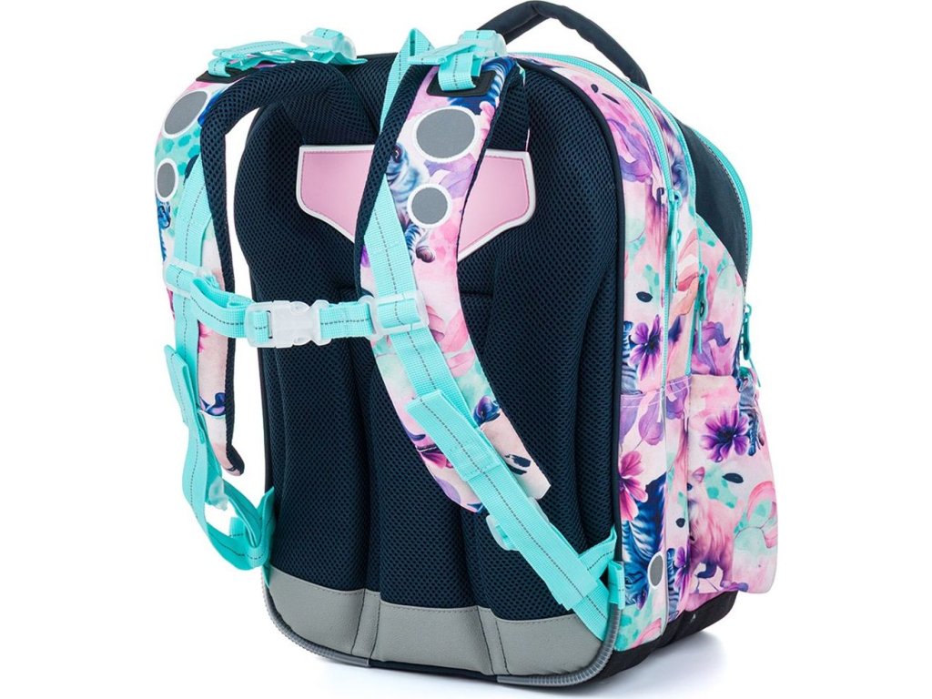 Vnitřní prostor je rozdělený do více komor pro snadnou organizaci školních pomůcek. Do zadní části batohu doporučujeme uložit těžší učebnice nebo desky na sešity.