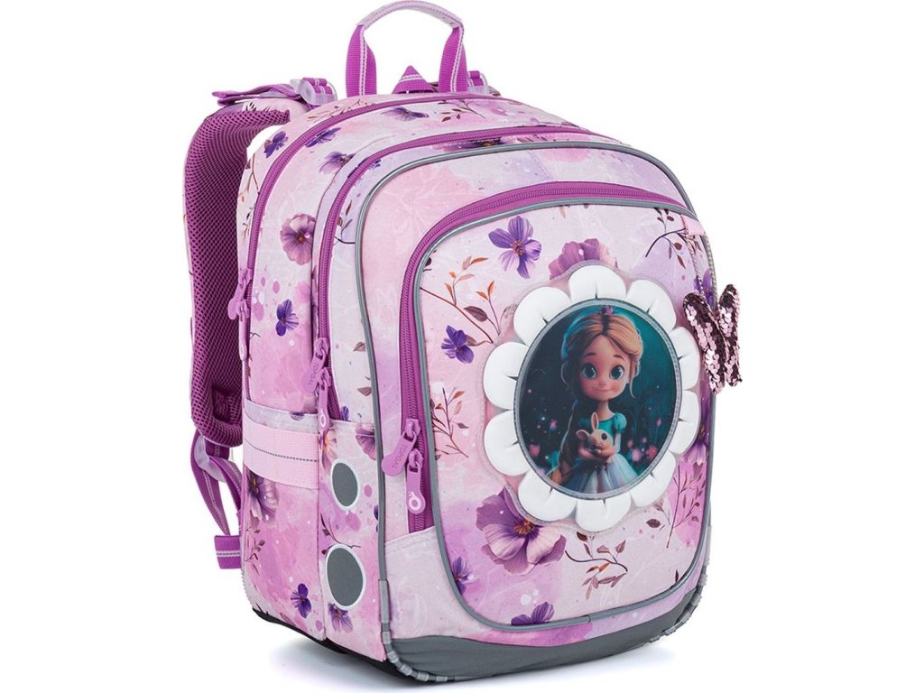 Lehoučký dvoukomorový model ENDY 26003 váží jen něco málo přes kilogram a perfektně padne drobným školačkám od první do třetí třídy základní školy. Jemný květinový motiv s kouzelnou vílou a třpytivým detailem dělá z batohu krásný doplněk, který si malé slečny zamilují na první pohled.