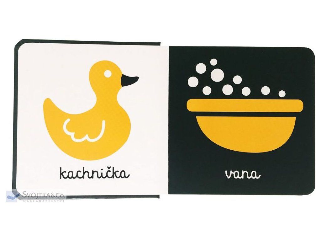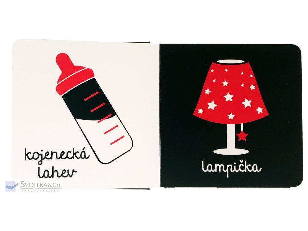 Batole lépe rozlišuje kontrasty, proto má tato obrázková knížka jednoduchou černobílou grafiku, která je oživena jednou výraznější barvou. Uvnitř knížečky najdete jednoduché tříbarevné obrázky, uzpůsobené citlivému dětskému zraku, se kterými se běžně setkává. Děťátko se s tímto leporelem bude učit poznávat věci kolem sebe. Leporelo je vyrobeno z pevného materiálu, má oblé hrany a velké je tak akorát do dětských ručiček. Je to ideální první kniha v životě vašeho děťátka. Tak šup s ní do kočárku!Doplňkové parametry