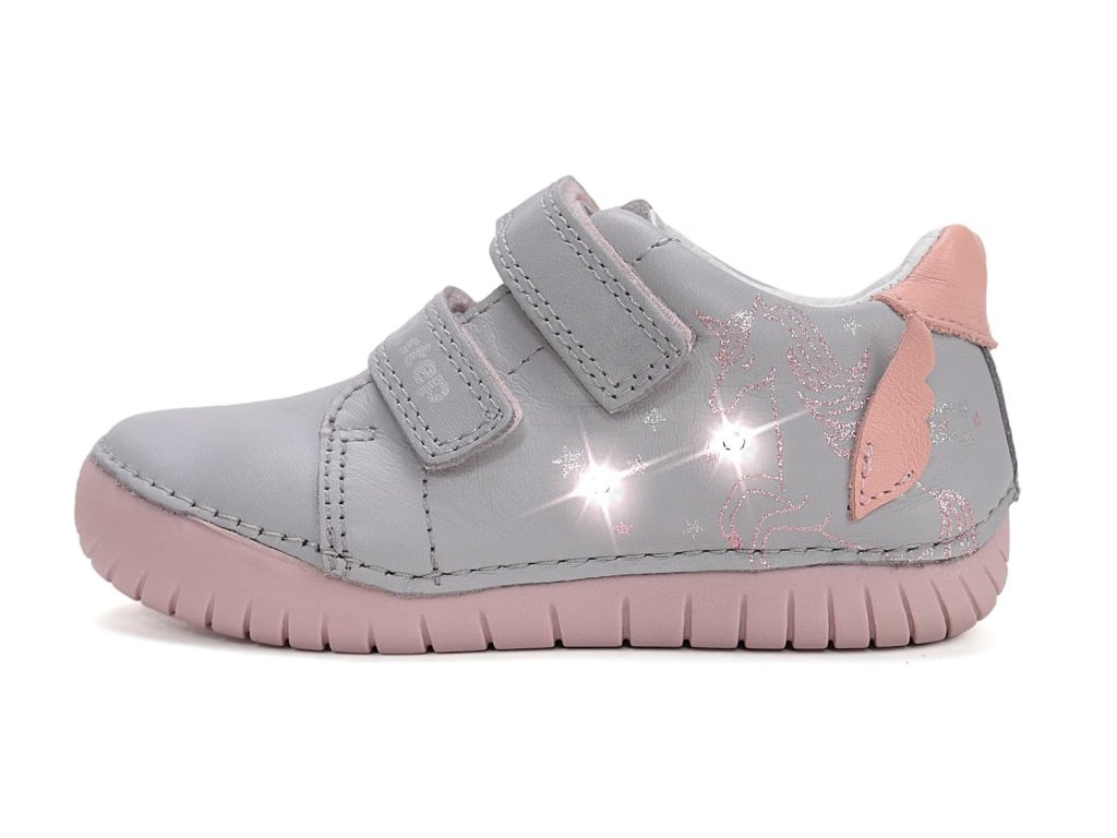 Svítící boty DD Step S050-61970B Dove Grey - to je sen mnoha dětí a pokud po nich Vaše dítě zatím netouží, tak až je uvidí, tak už jiné chtít nebude :-D U těchto bot se ještě přidává pohodlí, a tak máte zaručeno, že budou opravdu oblíbené. Nižší střih pod kotník, v šedo-růžové barvě s motivem jednorožce a blikajícími diodami na boku.
