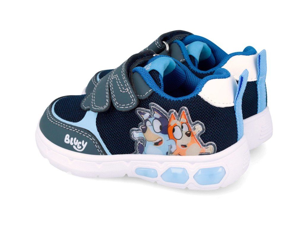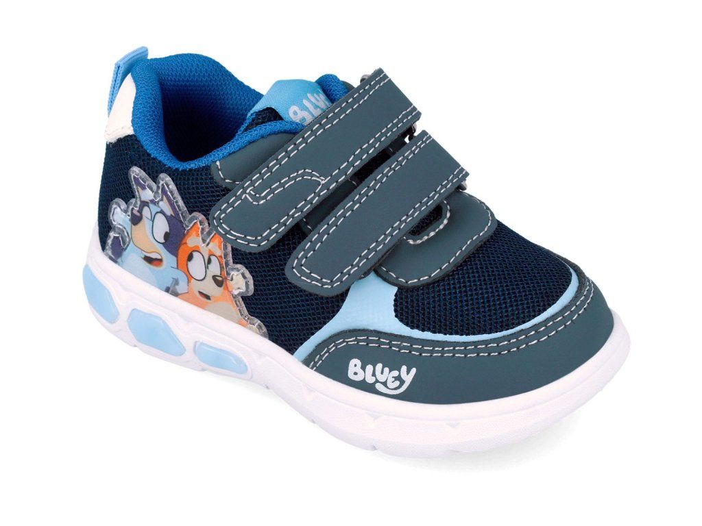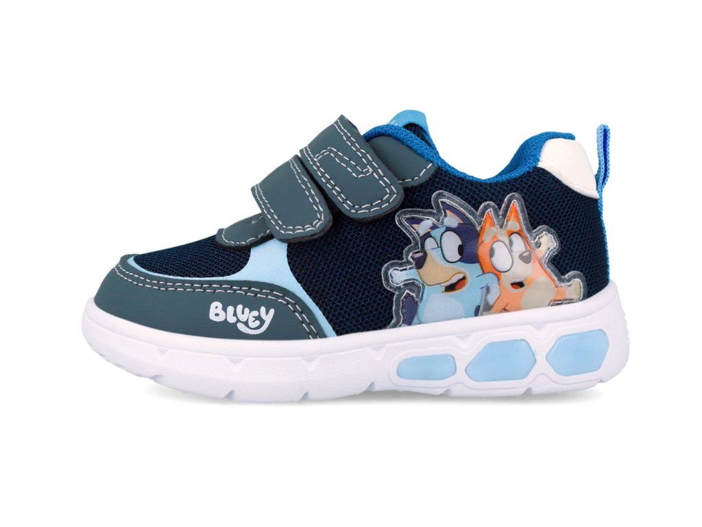 Svítící tenisky Garvalín 262860-A008 Azul, v modré barvě s motivem Bluey. Podrážka na straně boty při chůzi bliká! To děti milují! Blikání je navíc praktické ve tmě nebo když je šero - dítě je tak dobře vidět a to je skvělé pro jeho bezpečí.