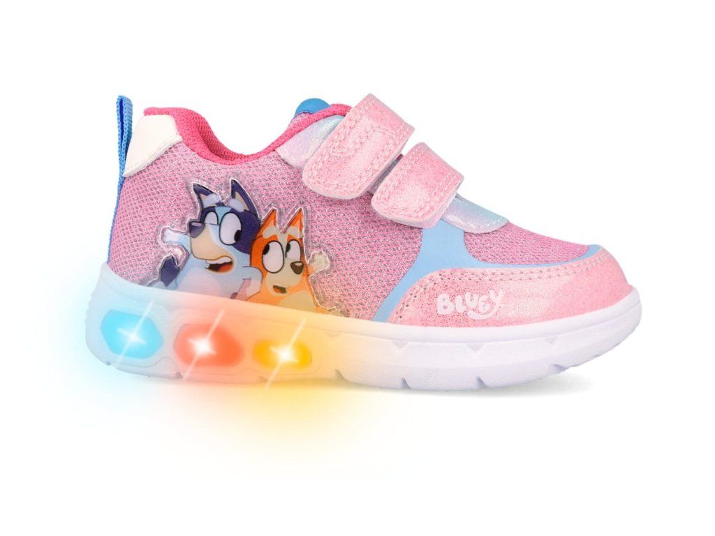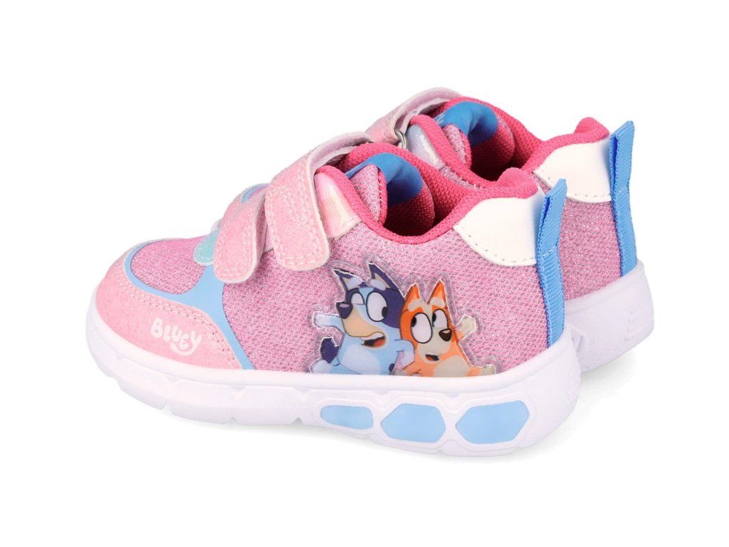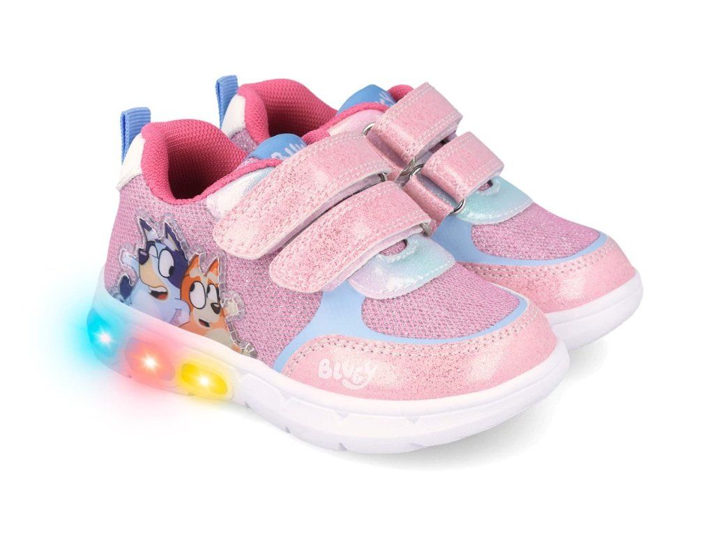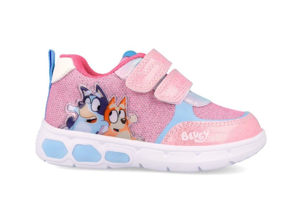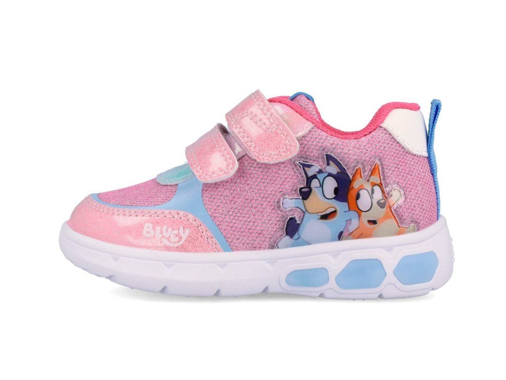 Svítící tenisky Garvalín 262860-B032 Rosa, v růžové barvě s motivem Bluey. Podrážka na straně boty při chůzi bliká! To děti milují! Blikání je navíc praktické ve tmě nebo, když je šero - dítě je tak dobře vidět a to je skvělé pro jeho bezpečí.