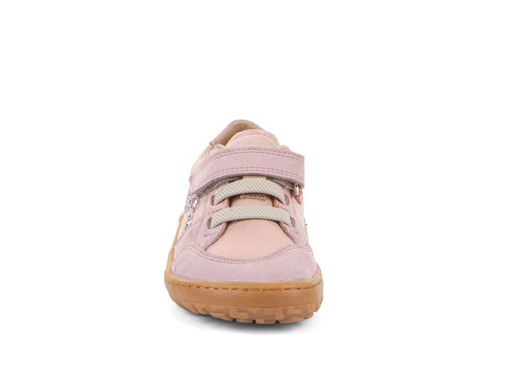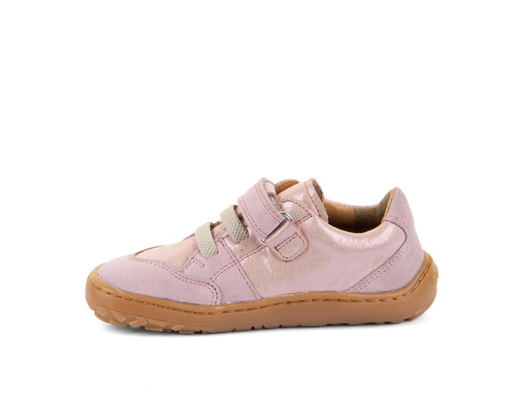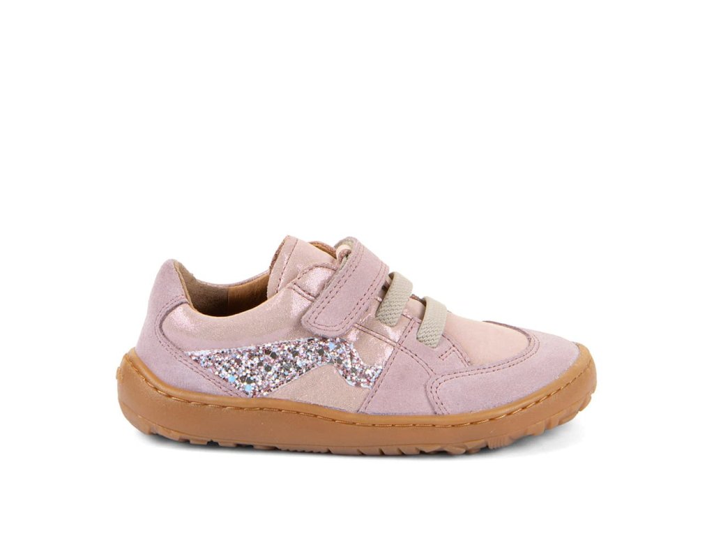 Stylové barefoot tenisky Froddo G3130286-5 Pink Shine s oblíbeným třpytivým efektem mají design zaměřený na holčičky. Zapínají se pomocí jednoho suchého zipu pod kterým je gumička imitující tkaničky. Tenisky tak dobře vypadají a zároveň se jednoduše nazouvají - stačí jen utáhnout jeden suchý zip. Vrchní část boty je kompletně kožená a tím velmi odolná. Podrážka je z barvené přírodní gumy, se vzorkem. Reflexní prvek na boku.
