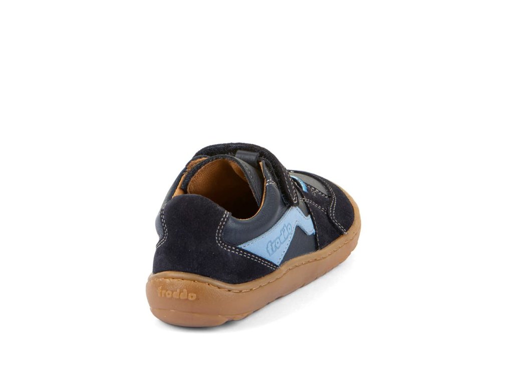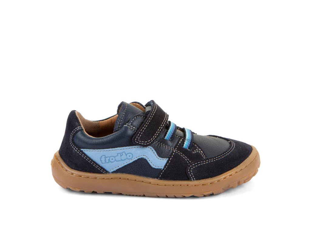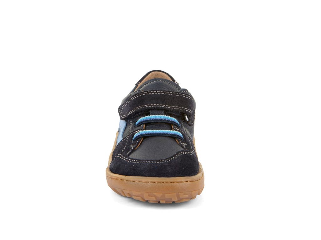 Stylové barefoot tenisky Froddo G3130286 Dark Blue mají design zaměřený na větší děti. Zapínají se pomocí jednoho suchého zipu pod kterým je gumička imitující tkaničky. Tenisky tak dobře vypadají a zároveň se jednoduše nazouvají - stačí jen utáhnout jeden suchý zip. Vrchní část boty je kompletně kožená a tím velmi odolná. Podrážka je z barvené přírodní gumy, se vzorkem. Reflexní prvek na boku.
