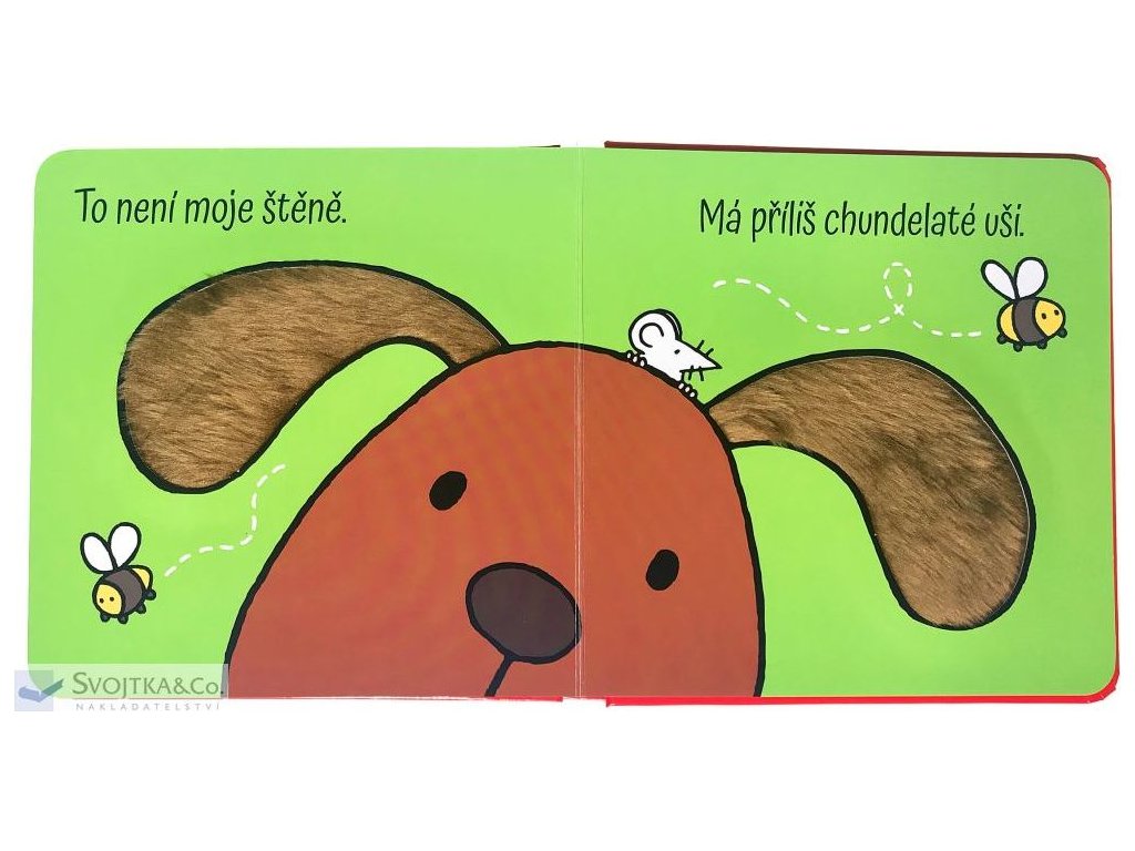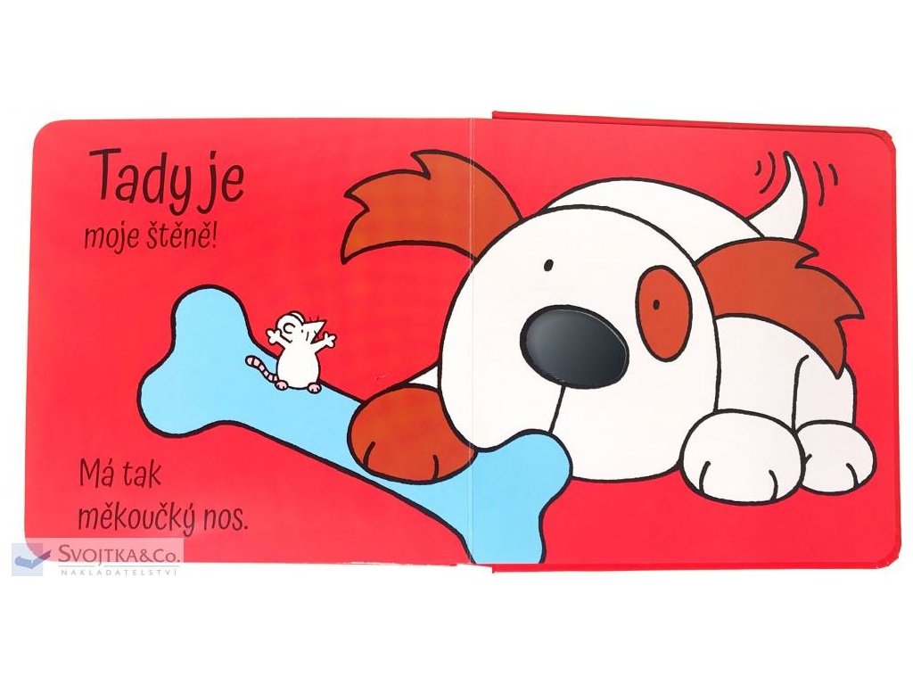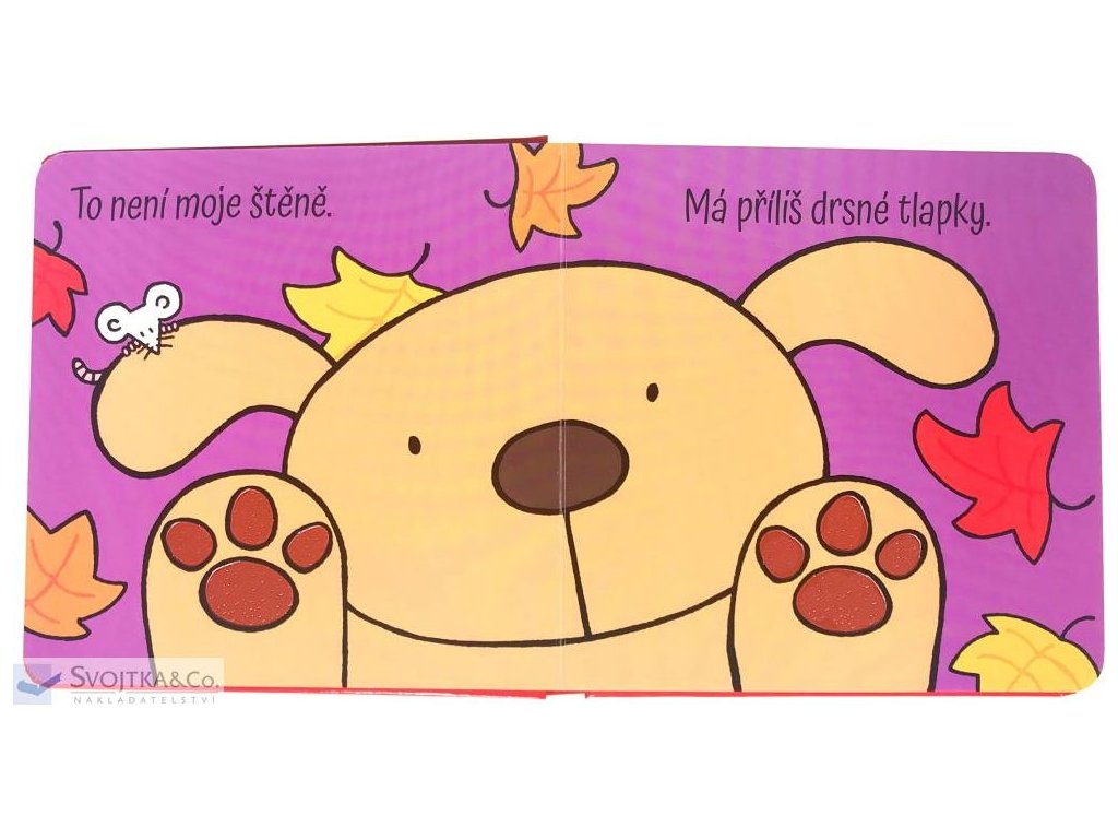 Najdeš svoje štěňátko mezi ostatními pejsky? Má tvoje štěňátko načechraný ocásek, nebo drsné tlapky? Nemá náhodou blyštivý obojek? Pozorně se dívej a hledej! Děti si mohou jednotlivé prvky osahat a zlepšovat tak poznávání materiálů a povrchů pomocí hmatu. Leporelo se zářivými a krásnými ilustracemi rozvíjí jak zrak a hmat, tak i motorické schopnosti nejmenších dětí.
