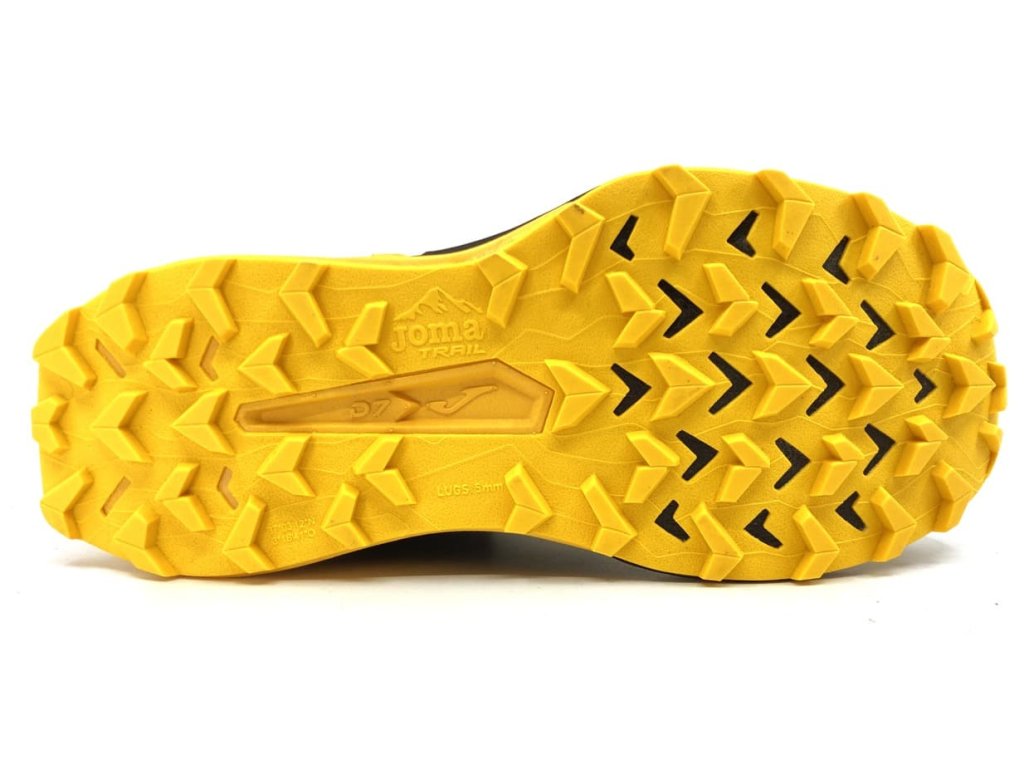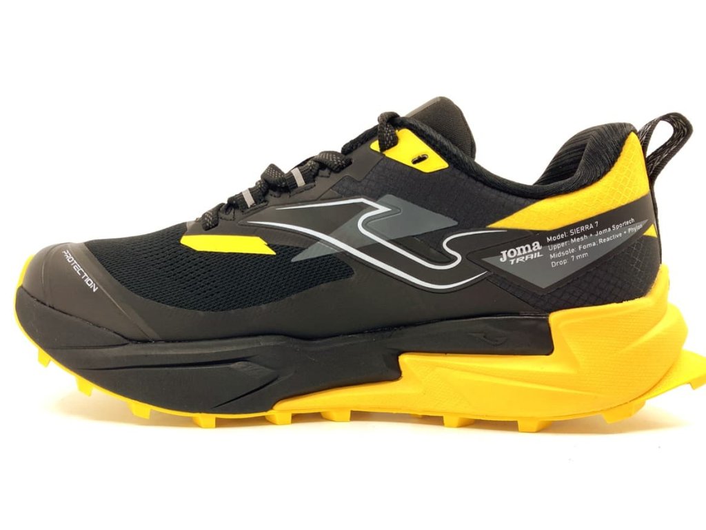 Trailové tenisky Joma Sierra 2601 Black v univerzální černo-žluté kombinaci zaujmou nejen svým designem. Boty jsou lehké a odolné, vyrobené z prodyšné textilie a syntetiky. Podrážka i stélka skvěle tlumí dopady, hrubý vzorek na podrážce přilne v jakémkoliv terénu.