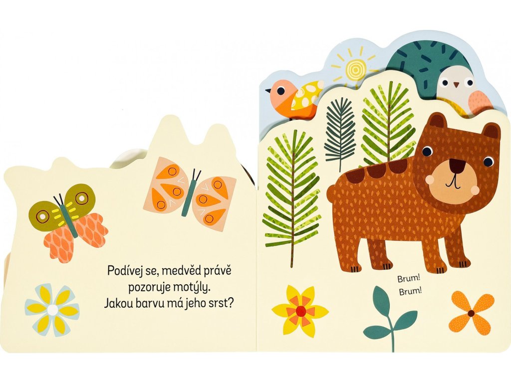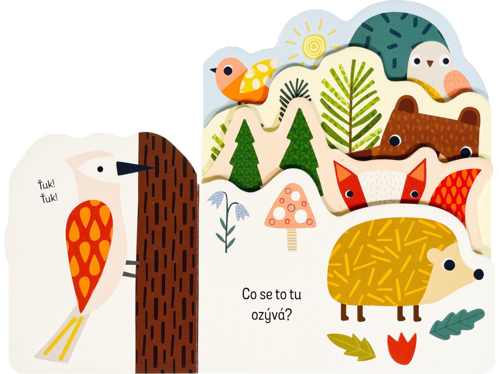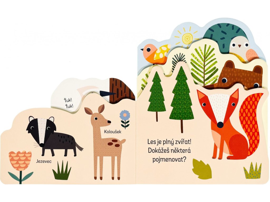 Zjisti, co všechno se děje v lese, v této zajímavě pojaté knížce. Leporelo má různě tvarované stránky, které zaujmou především dětské prstíky. Zpod dalších stránek vykukují obrázky, které vzbudí u malých čtenářů zvědavost - co asi bude na další a další stránce? Kniha s milými ilustracemi obsahuje popisky zvířat z lesa a doplňující otázky, a tak si můžete s dítětem povídat o lesních zvířátkách a pomáhat mu rozšiřovat slovní zásobu a rozvíjet fantazii.Doplňkové parametry