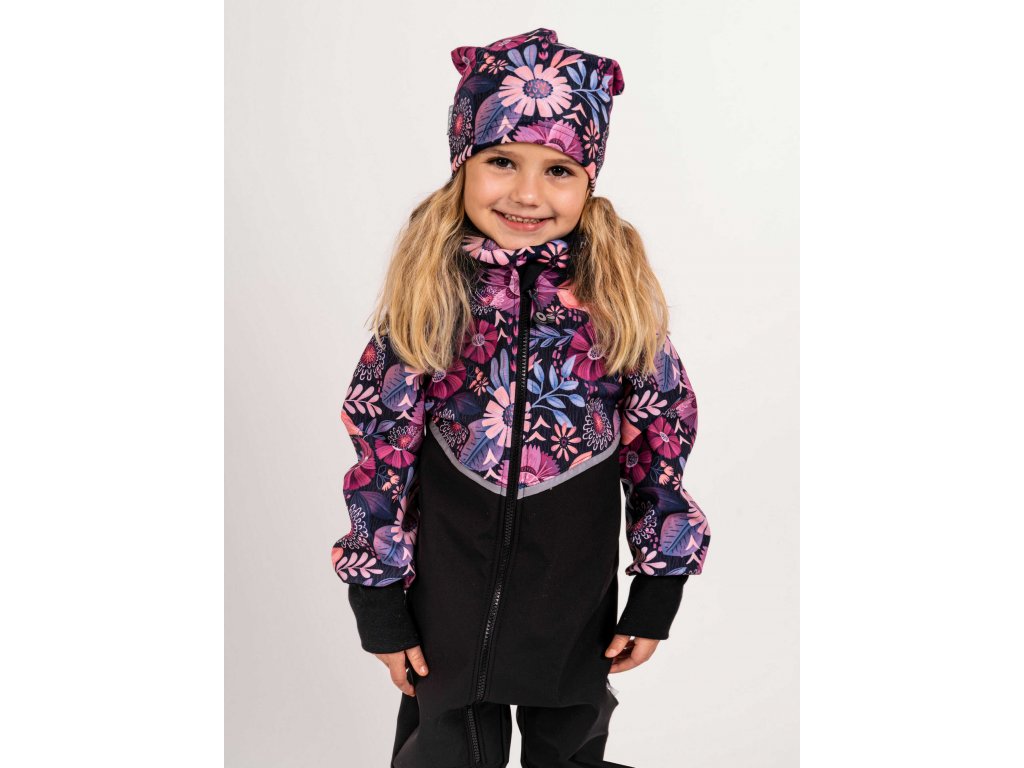 UNUO Batolecí softshellová kombinéza s fleecem Mini, černá, kouzelné květiny