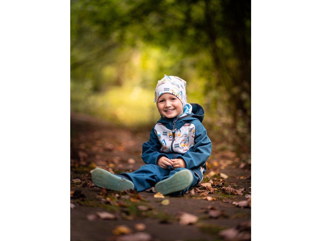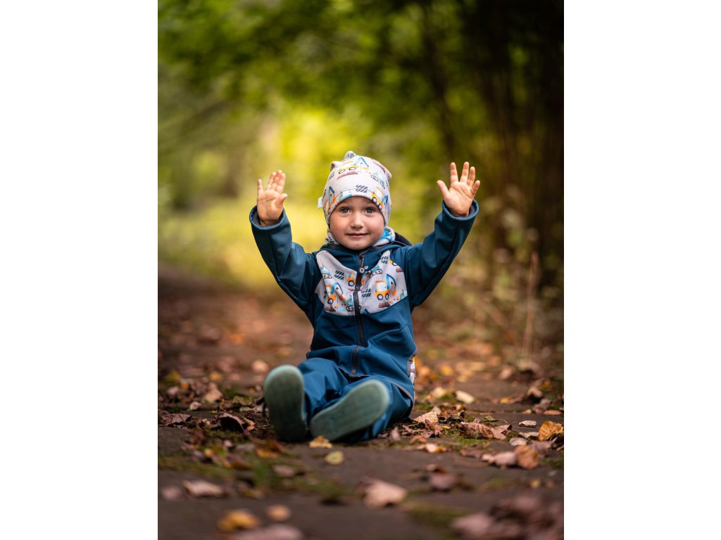Materiál možná z kosmu, možná se nám maminkám jenom zdá. Je v něm teplíčko, když kolem fouká jako o závod, ale když vysvitne sluníčko, tak se díky speciální membráně v něm děti nepotí. Dnes se tento materiál vyrábí zejména z recyklovaných PET lahví. Menší děti jej využijí na bundičce prakticky na celý rok, ale na kdy se nejvíce hodí, naleznete v našem rádci. Materiál není zcela voděodolný, jako pláštěnka, ale menší deštíky zvládne s přehledem. Malé nehody je možné otřít jen hadříkem. Softshell je opatřen speciální úpravou s vysokou odolností v otěru.