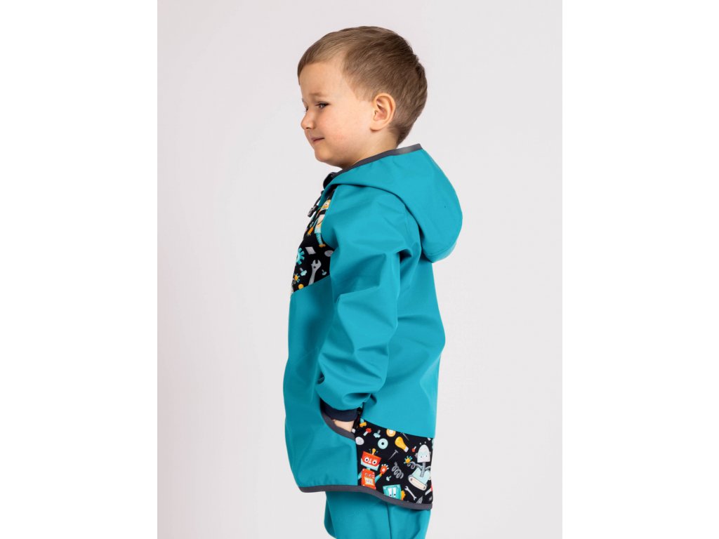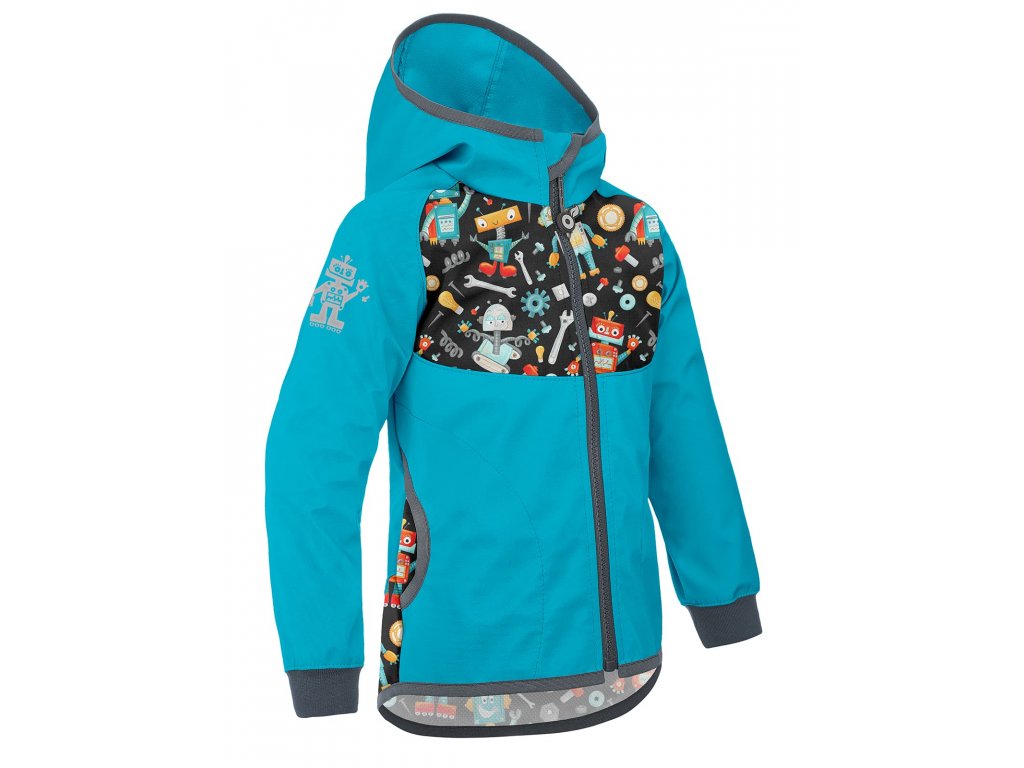 UNUO Dětská softshellová bunda bez zateplení Basic, Smaragdová, Roboti