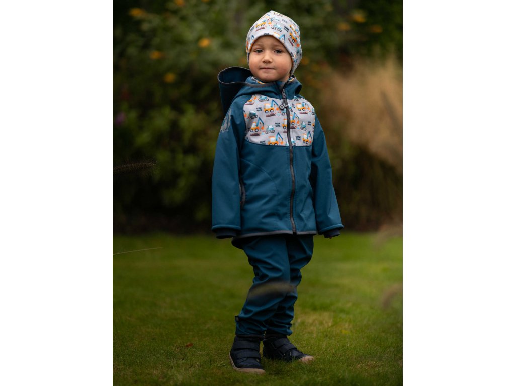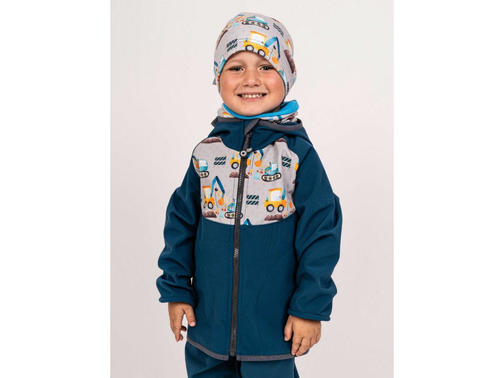 UNUO Dětská softshellová bunda s fleecem Basic, Kobaltová, Bagry