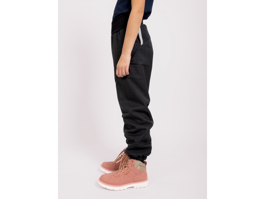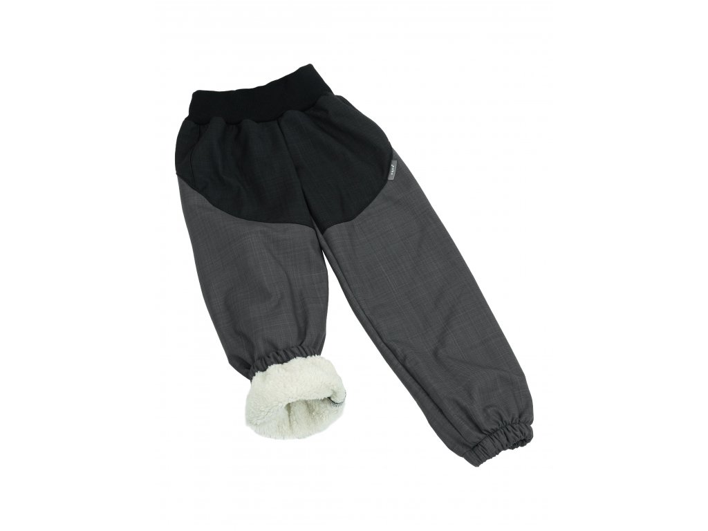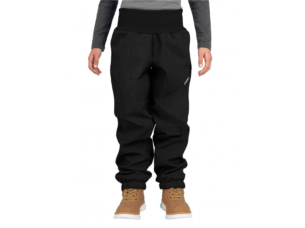 UNUO Dětské softshellové kalhoty s beránkem Light, Černá Žíhaná
