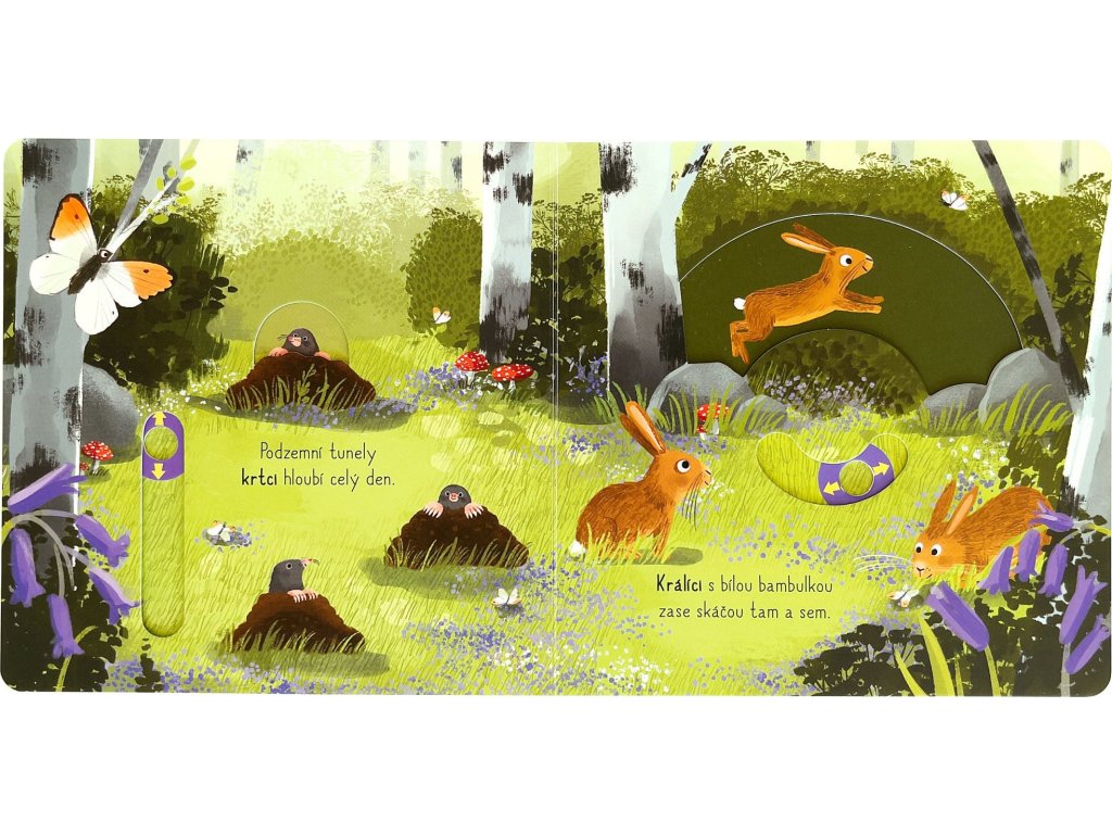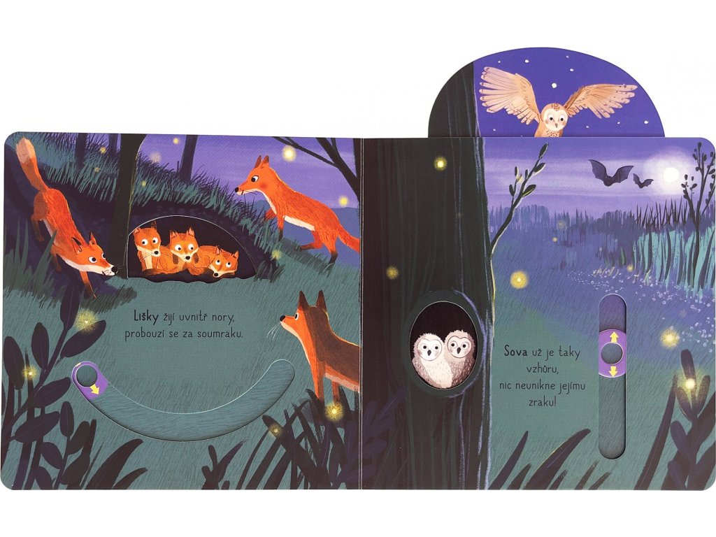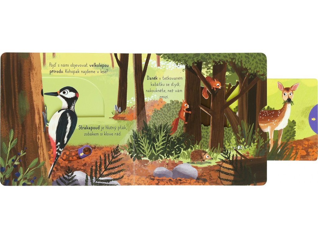Když vkročíme do lesa a budeme pěkně potichu, určitě tam objevíme spoustu zvířecích obyvatel. Stejně jako v obrázcích tohoto leporela. Skrývá se tam hlučný strakapoud, stydlivý daněk, ale taky hravé lišky nebo sova s velkýma očima. Ti všichni čekají na malé objevitele a objevitelky v tomto veršovaném leporelu s pohyblivými prvky. Obrázky lze oživit na každé stránce. Stačí tady zatáhnout, tam posunout nebo pootočit. Knížka zároveň rozvíjí jemnou motoriku.Doplňkové parametry