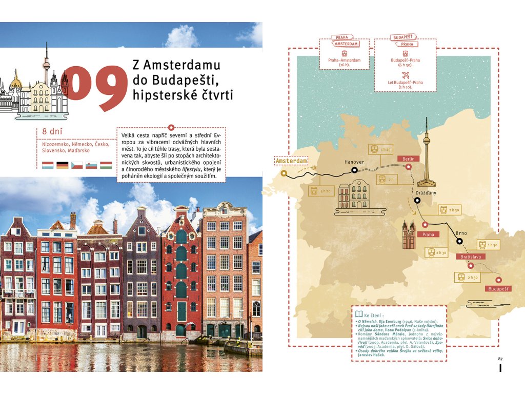 Láká vás pomalejší cestování, milujete zvuk píšťalky na peróně? Objevte s touto knihou 30 nezapomenutelných cest vlakem napříč Evropou. Ať už máte dny nebo týdny, z nabízených itinerářů si vyberete. Vlak je skvělý prostředek pro společné cestování, je ekologický, úsporný a má ideální tempo na poznávání krajiny a kultury. Vystupte na slavných nádražích, objevujte i zapomenuté lokálky. Zasvěcené tipy vás zavedou na místa, kde to žije. Čekají vás irské hrady, kanály v Bruggách, lázně v Budapešti, rakouská jezera i italské vísky. Co s sebou? Doporučené knihy a hudbu přímo z daných lokalit. A hlavně tento originální průvodce – s mapami a adresáři ubytování. Vše, co budete na svém železničním dobrodružství potřebovat. Nastupovat, odjíždíme!Doplňkové parametry