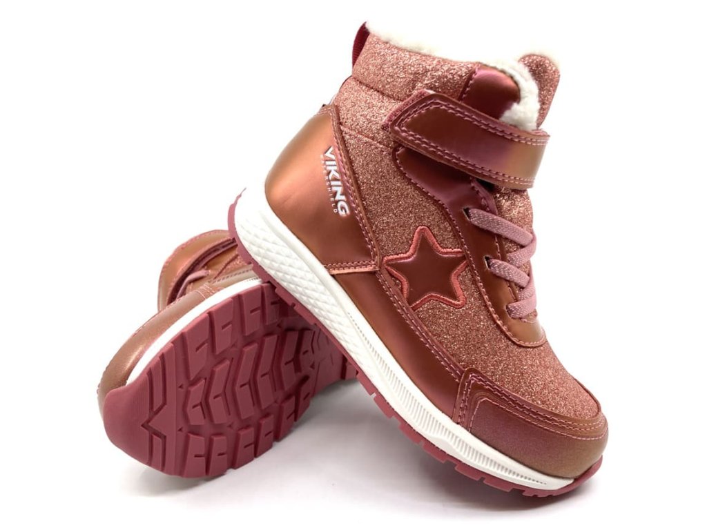 Viking Equip Star Warm WP 1V SL jsou dívčí zimní boty v růžové barvě se třpytkami, které kombinují styl a pohodlí. Nepromokavá membrána udrží nožky v suchu, zatímco teplounký kožíšek zajistí teplo i v mrazech. Boty od norského výrobce Viking jsou poměrně lehké, mají protiskluzovou odolnou podrážku, která dobře absorbuje vibrace.