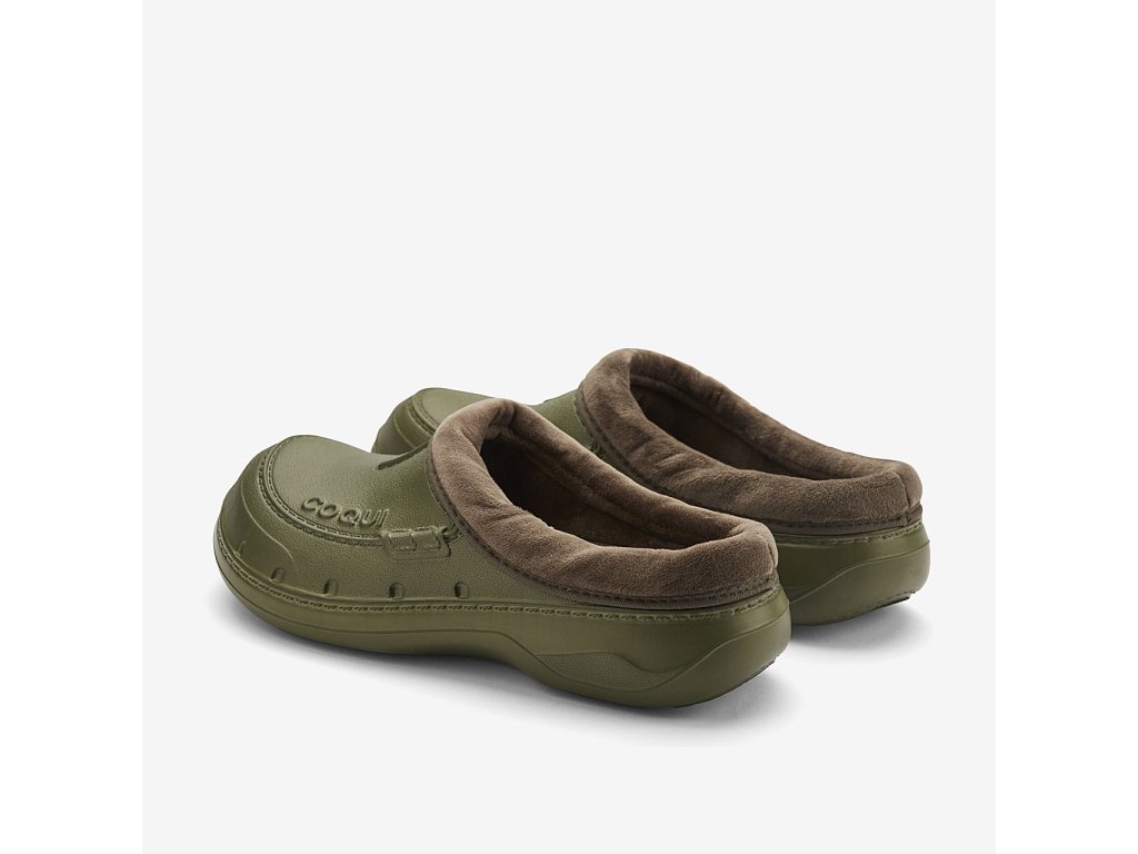 Oblíbené pánské nazouváky s podšívkou z umělé kožešiny budou v chladnějším období ideálním a praktickým doplňkem. Jsou vyrobeny z neklouzavého antibakteriálního materiálu CoquiAir a jsou určeny k běžnému nošení především ve vnitřních prostorech. Hřejivé, lehké, ohebné a hlavně pohodlnné. Vhodné na normálně široké až širší nožky. V tmavě zeleném provedení.