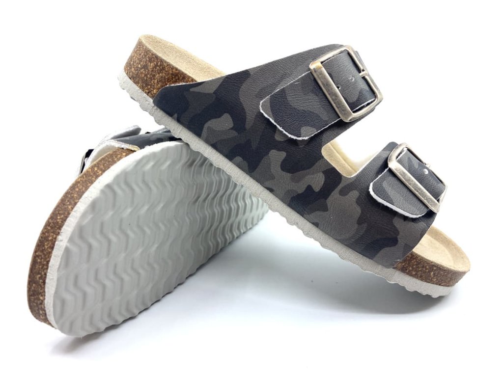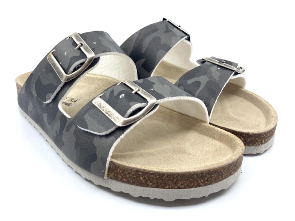 Zdravotní korkové pantofle Protetika s tvarovanou koženou stélkou s maskáčovým motivem. Pantofle mají prodlouženou svrchní část až skoro k patě a lépe tak drží na noze - jsou tedy skvělé i pro starší děti do školy. Pantofle jsou ideální na doma i na ven.