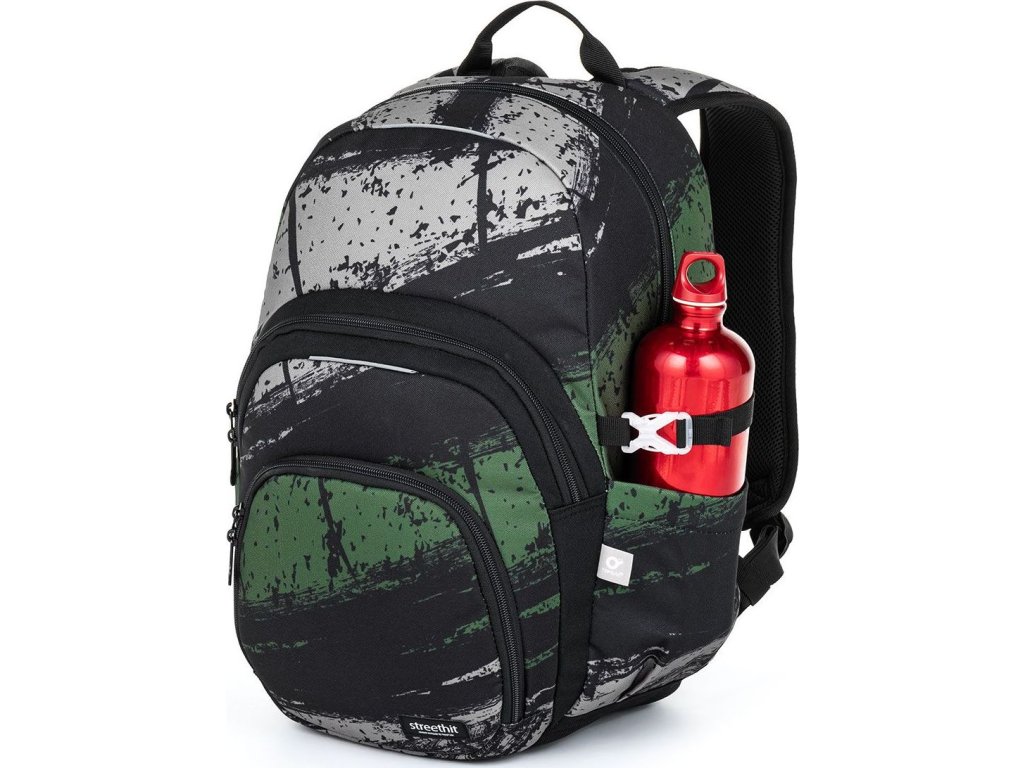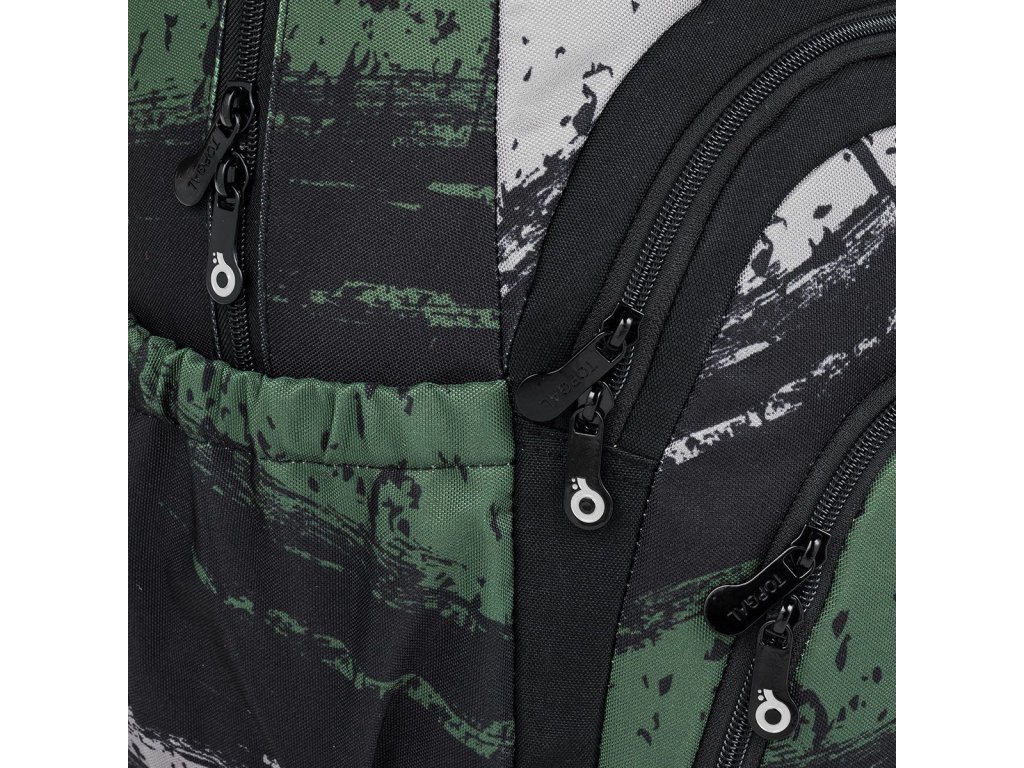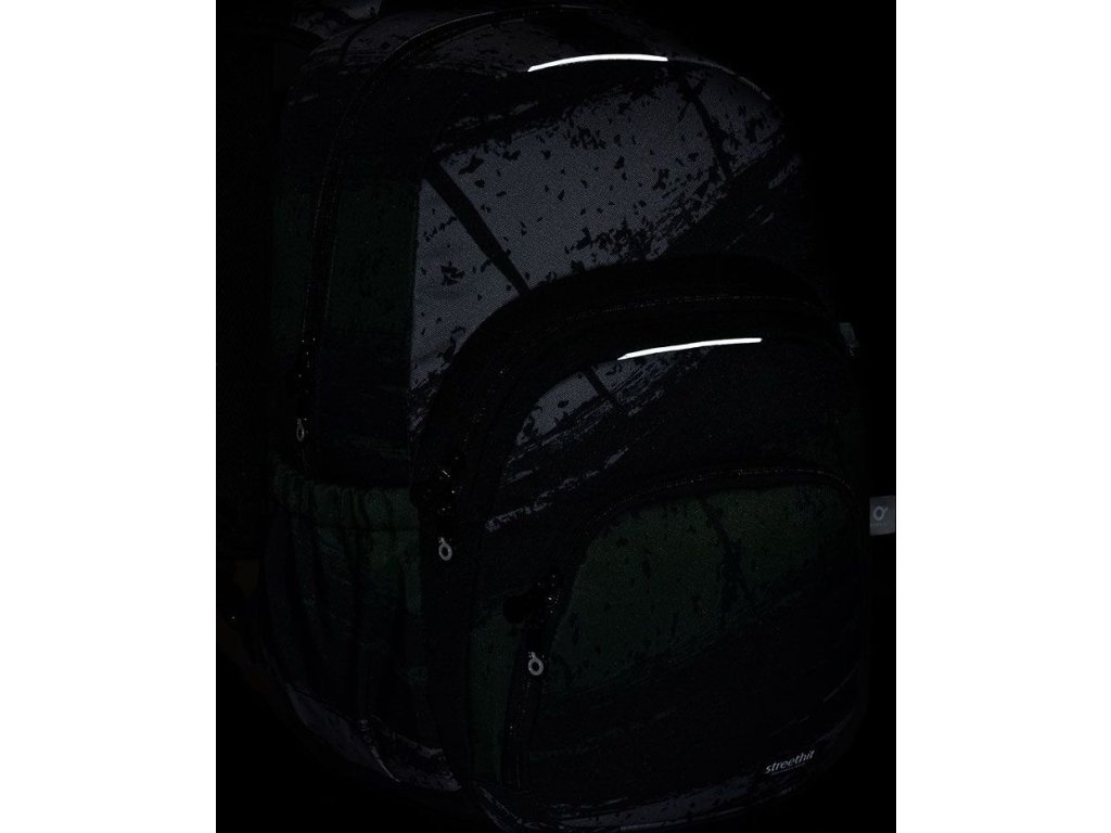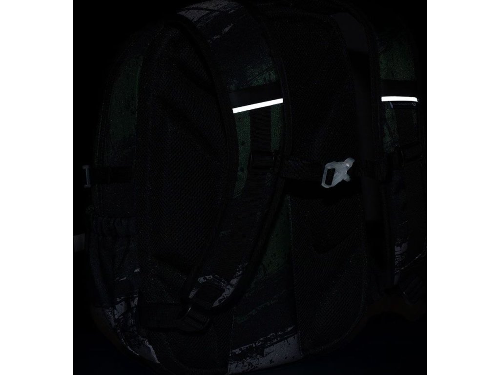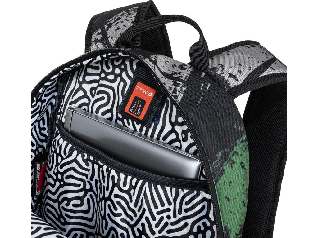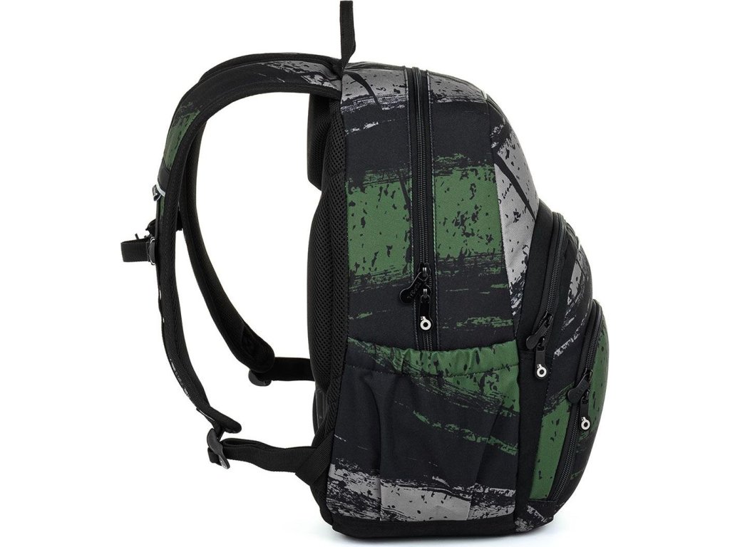 Jednokomorový batoh s zeleným a šedým žíháním doplní každodenní outfit dospívajícího kluka. Záda batohu jsou polstrovaná, anatomicky tvarovaná a pevná díky lehké hliníkové výztuze. Uvnitř zadní komory je umístěna polstrovaná kapsa na notebook i tablet.