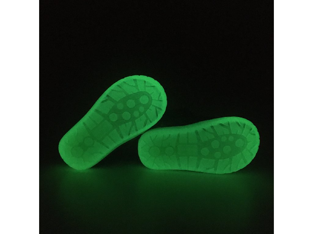 Modrá barva doplněná o reflexní obrázek "oblůdky" :o) a malé překvapení v podobě svítící podrážky - boty stačí nechat chvíli na světle a podrážka bude ve tmě zářit :o)